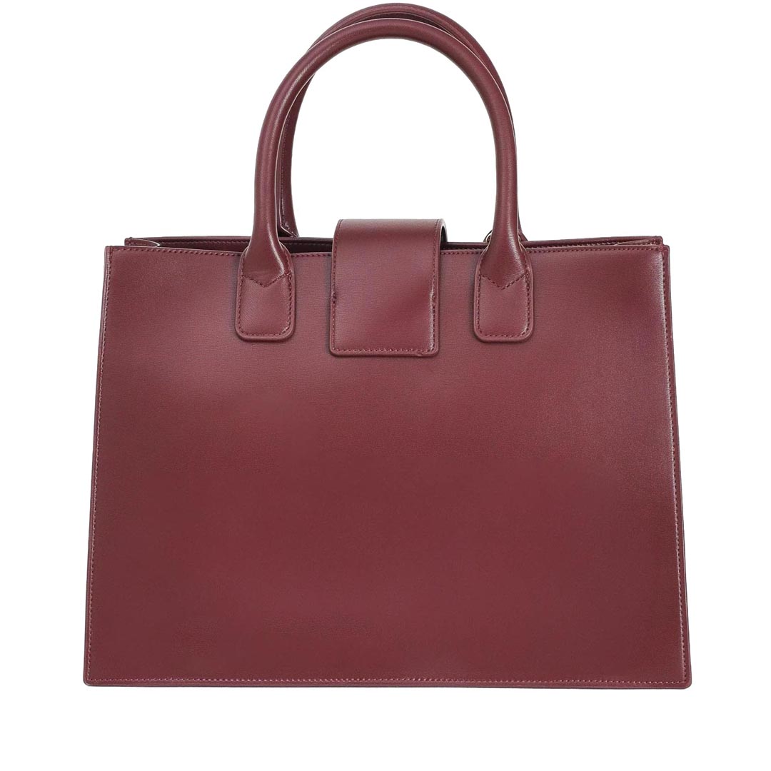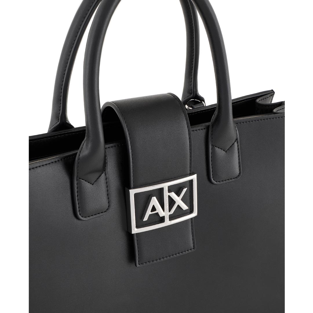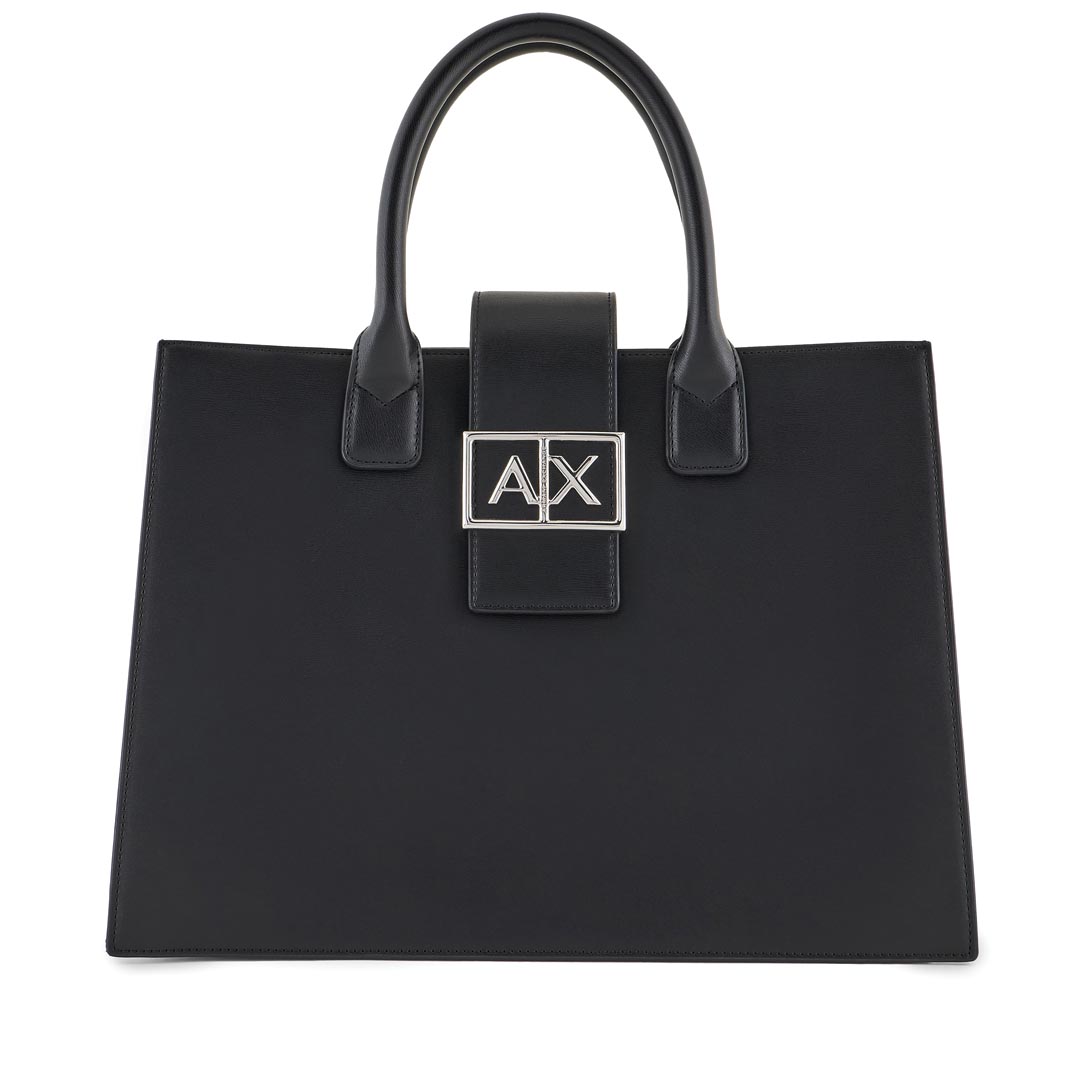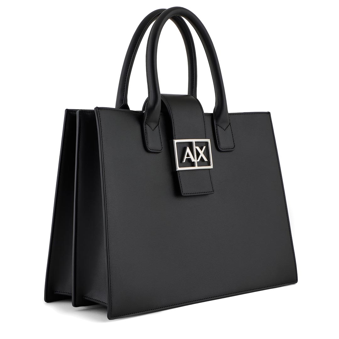 Borsa a mano dalla forma a trapezio, elegante e sofisticata. Il design strutturato dona un aspetto moderno e versatile, perfetto per ogni occasione. La tracolla removibile permette di trasformarla facilmente in una borsa a mano o a tracolla, offrendo praticità e stile. La chiusura ad incastro assicura sicurezza e facilità d'uso, mentre la decorazione con logo aggiunge un tocco distintivo e raffinato. Un accessorio chic e funzionale, ideale per completare qualsiasi outfit con eleganza. Borsa a mano in ecopelle Dettaglio decorativo con logo Chiusura ad incastro Due manici Tasca interna Tracolla removibile Dimensioni: 33,5 x 14 x 23 cm