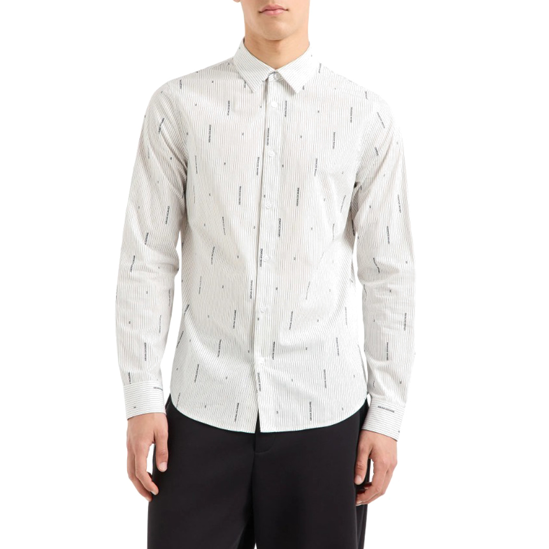 ARMANI EXCHANGE Camicia elegante bianca da uomo realizzata in dobby di cotone con motivo millerighe e logo. Il capo dispone di colletto classico, polsini con bottoni e chiusura con bottoni centrali.