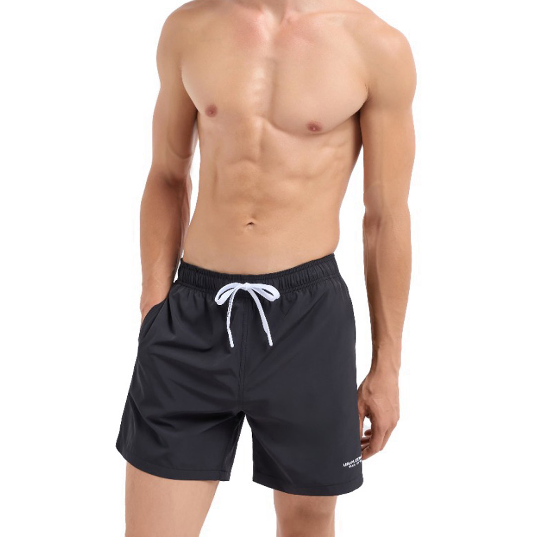 Boxer da mare realizzati in tessuto resistente caratterizzati dal logo e dalla vita elasticizzata con coulisse.