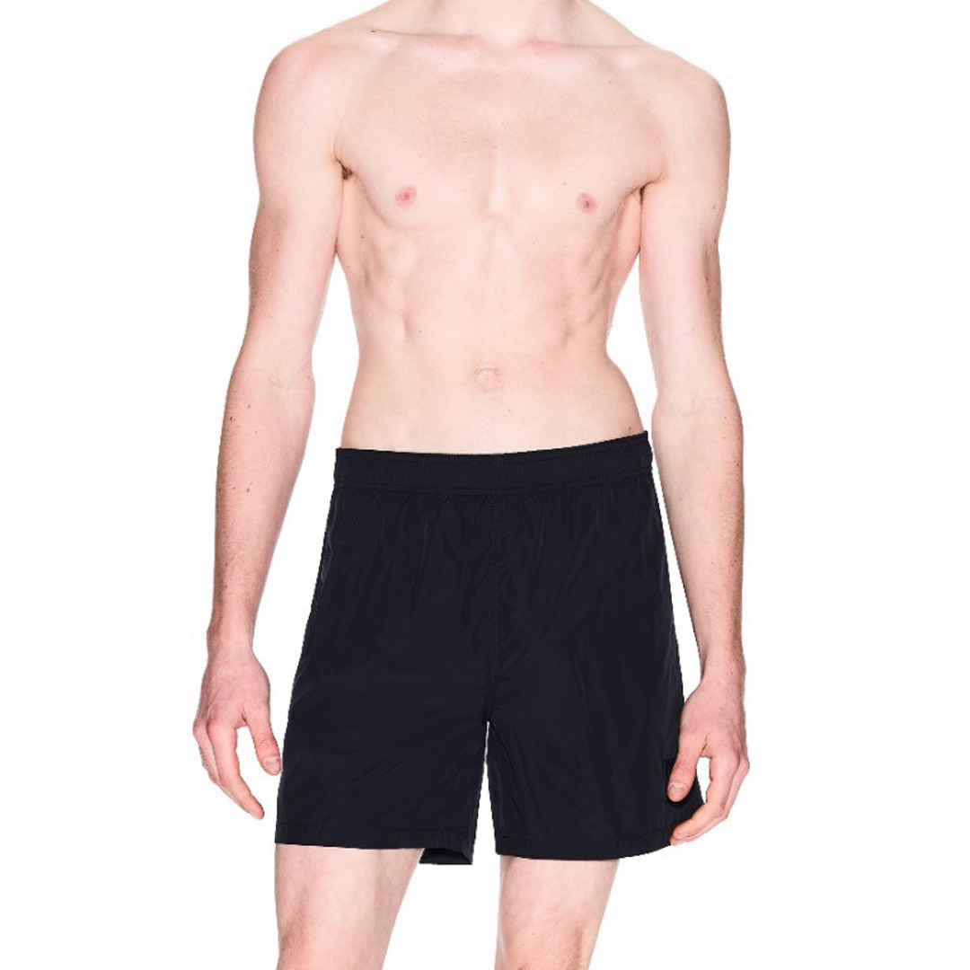 Costume modello boxer realizzato in tessuto resistente con elastico in vita e logo tono su tono.
