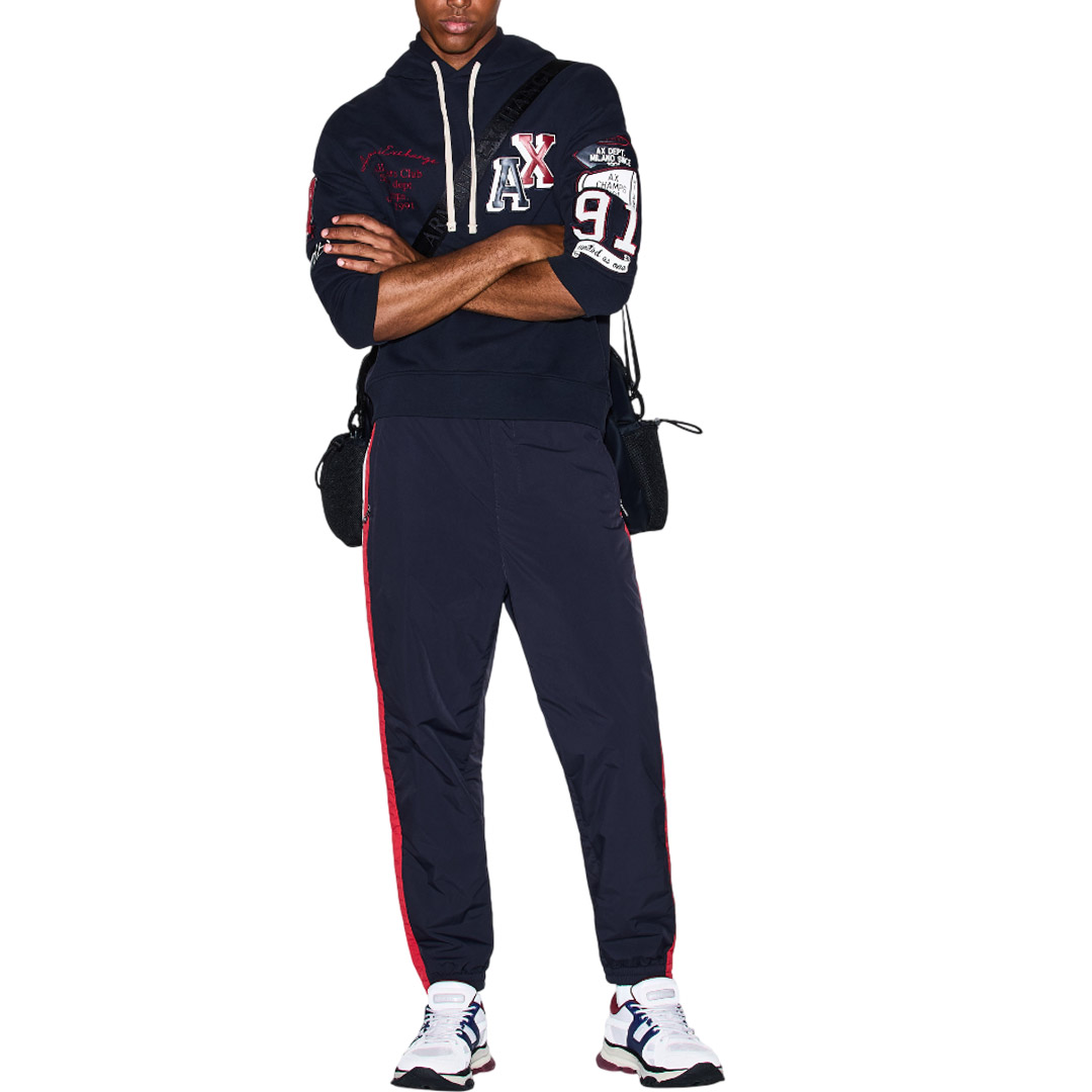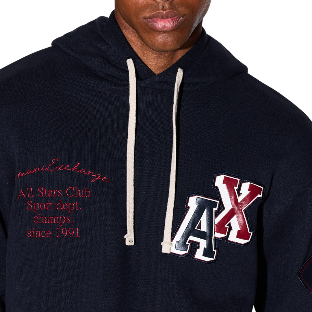 Questa felpa con cappuccio, un capo iconico del guardaroba casual, è stata reinventata per offrire un'esperienza di stile dinamico e comfort superiore. Realizzata con un tessuto morbido e avvolgente, garantisce una sensazione piacevole sulla pelle e un calore ottimale, rendendola ideale per un utilizzo versatile. Il design è arricchito da dettagli patch ricamati e stampe che aggiungono un tocco distintivo e un'estetica ispirata al mondo sportivo ma reinterpretata in chiave lussuosa.