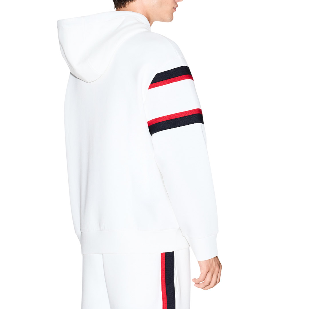 Tessuto: 79% cotone, 17% poliestere, 4% elastan; fettuccia: 100% poliestere; fodera cappuccio: 79% cotone, 17% poliestere, 4% elastan