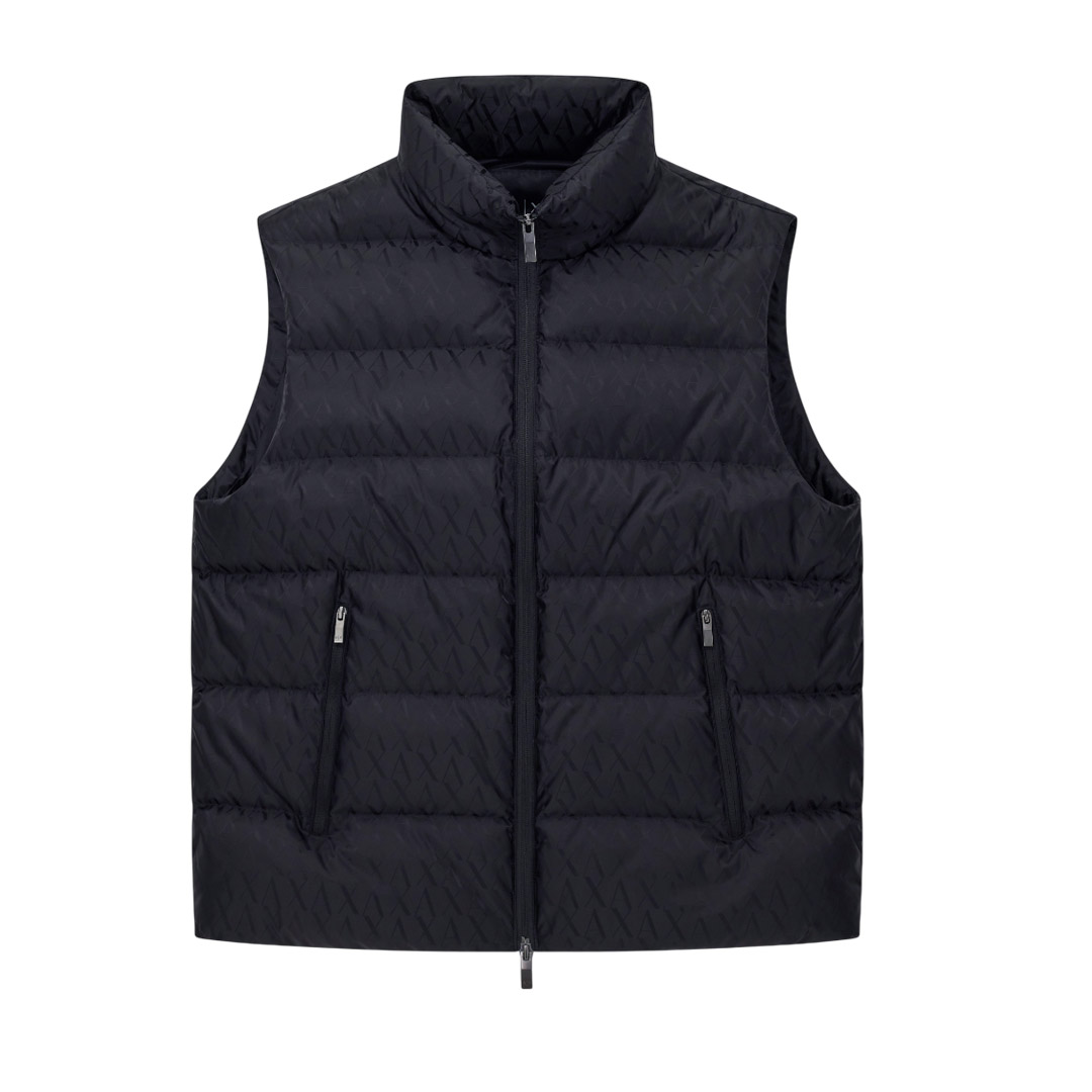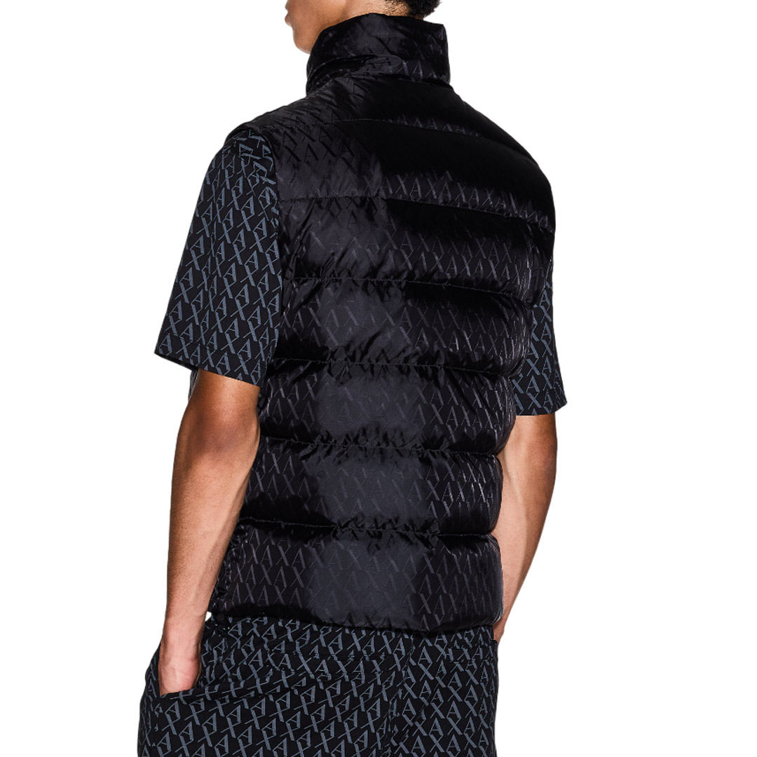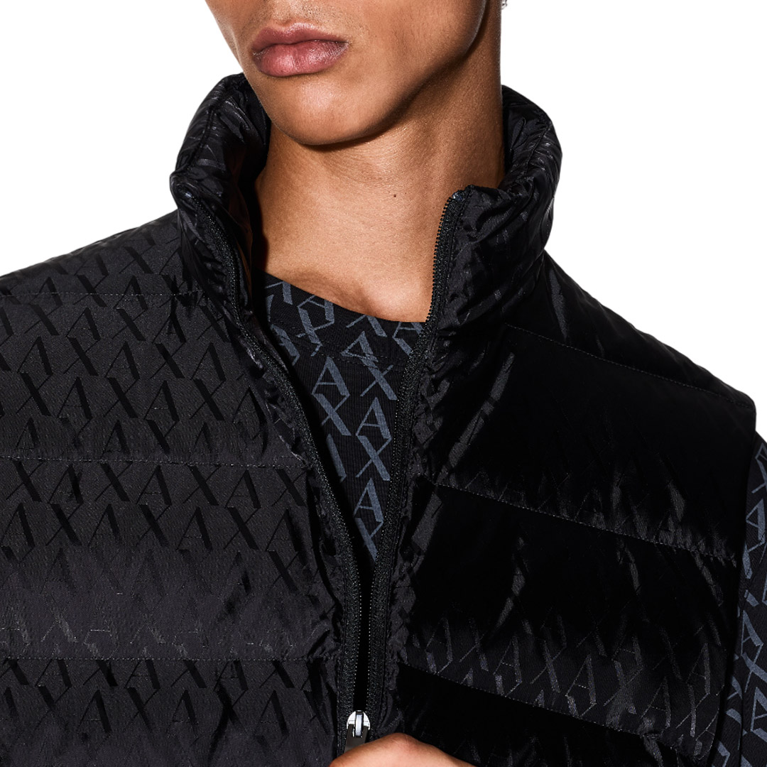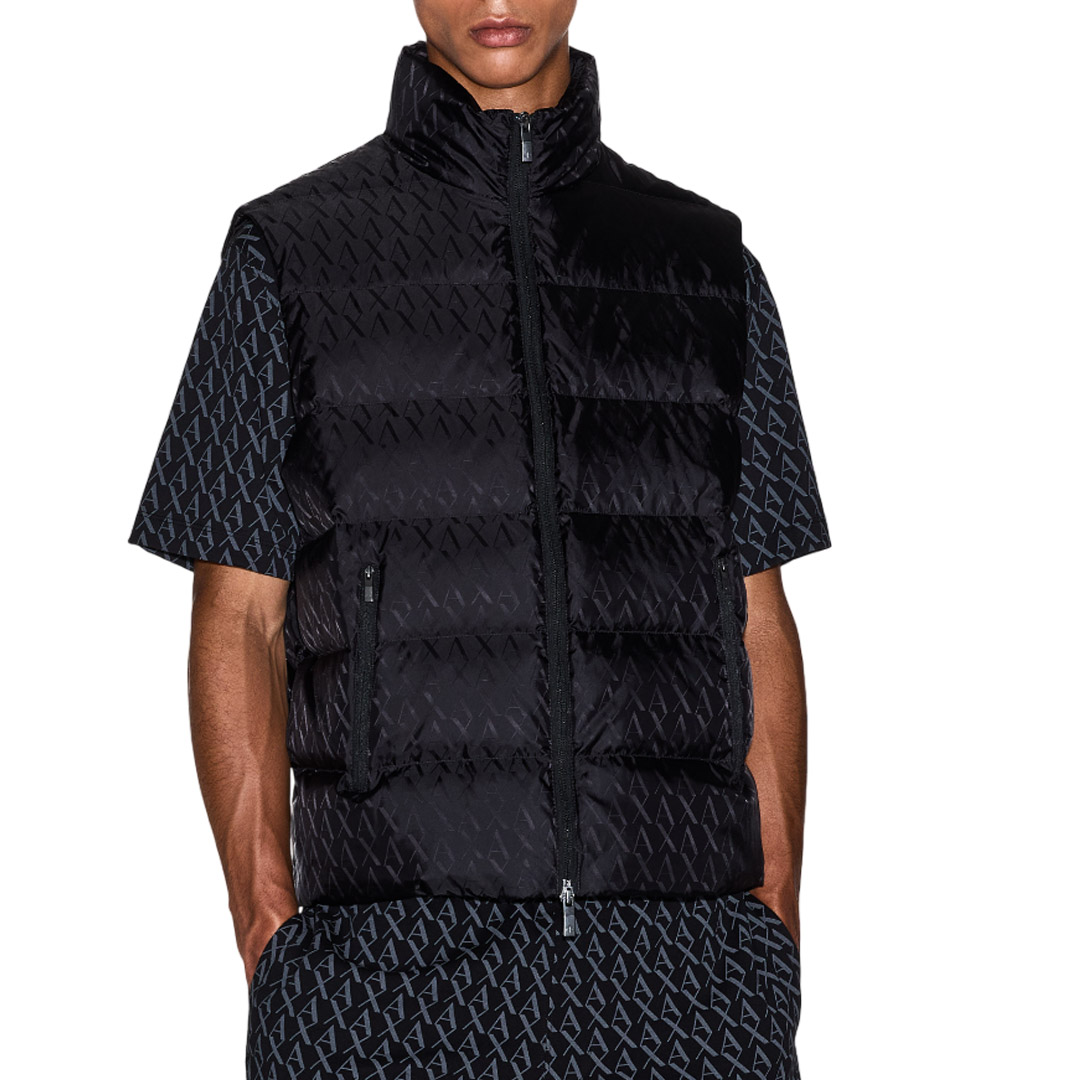 Smanicato imbottito realizzato con un esterno in nylon tecnico e una calda imbottitura, il capo perfetto per affrontare il freddo con uno stile inconfondibile. Questo giubbotto si distingue per la sua sofisticata lavorazione jacquard all-over con il logo A|X tono su tono, un dettaglio che aggiunge un tocco di eleganza discreta e un'identità forte. Il collo alto, la chiusura frontale con zip e le pratiche tasche laterali con zip ne definiscono il design funzionale.