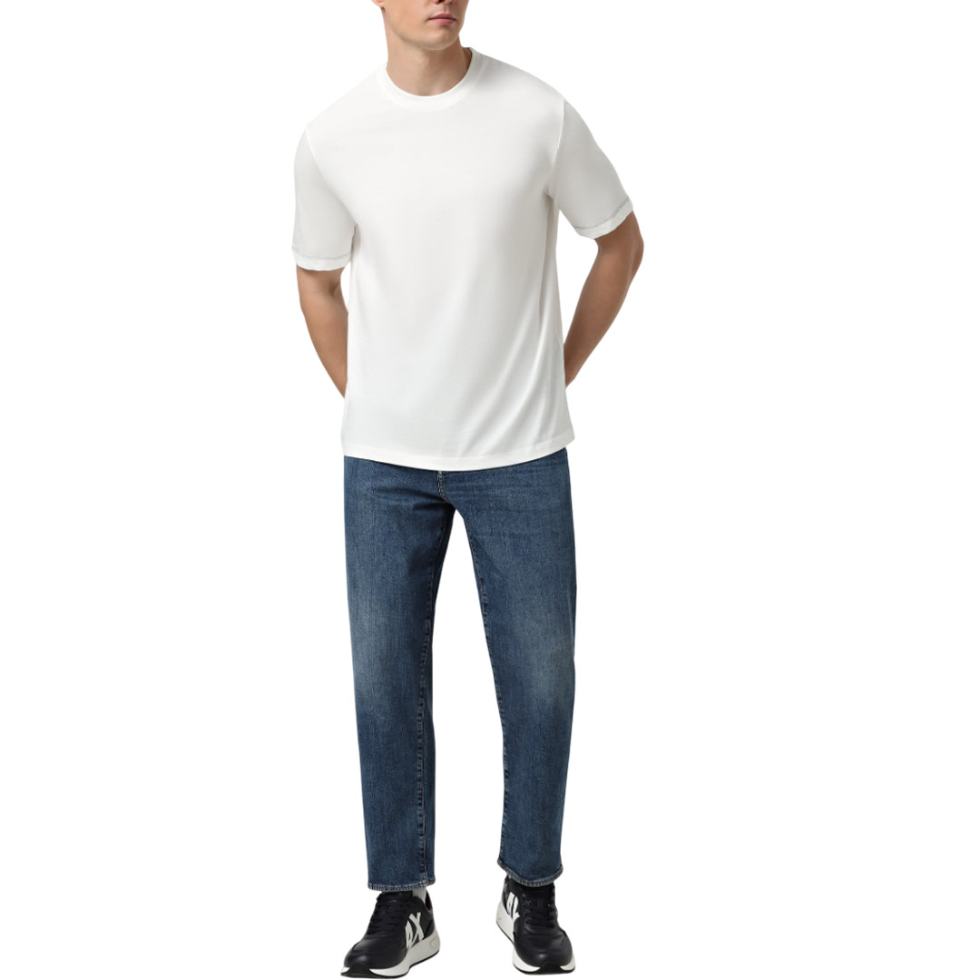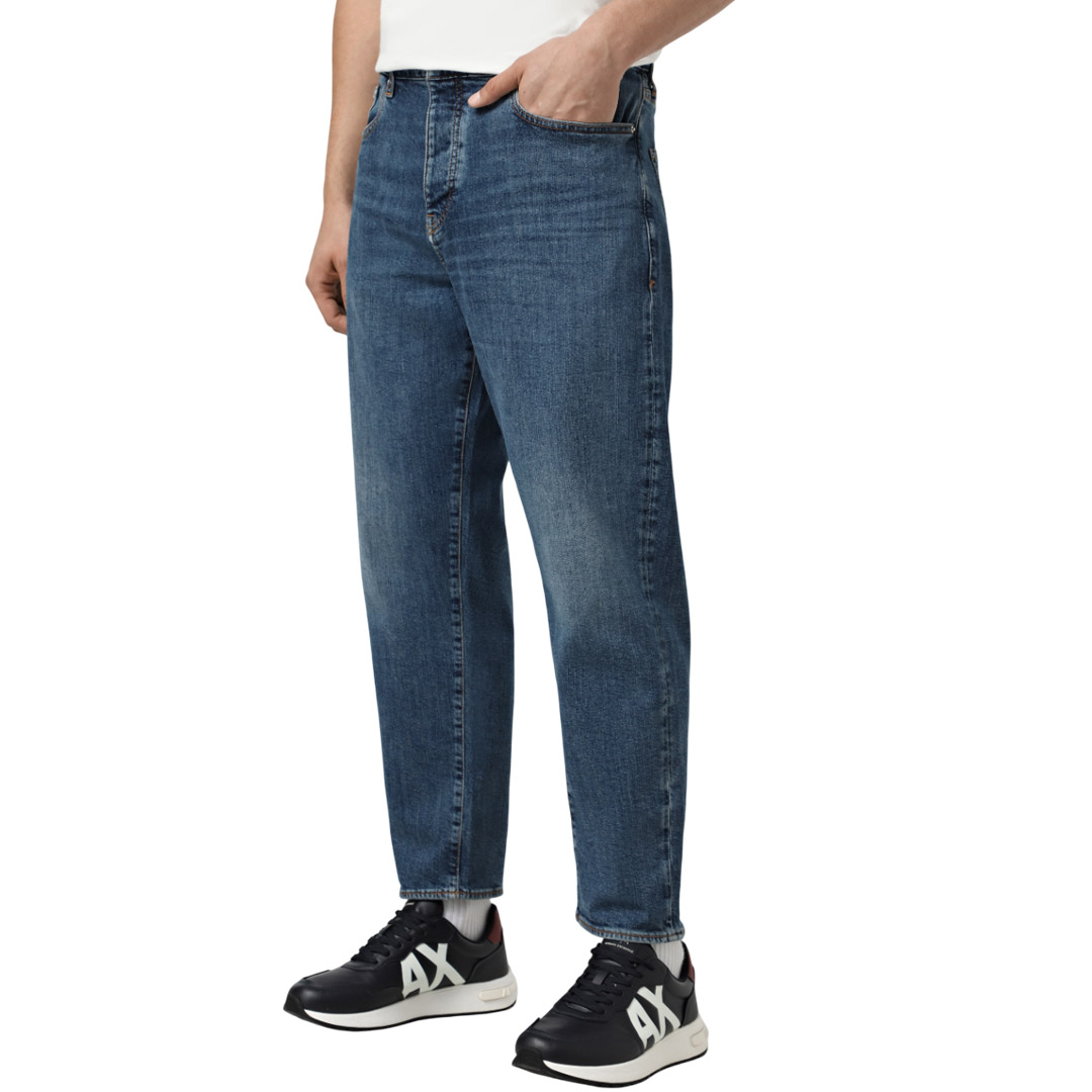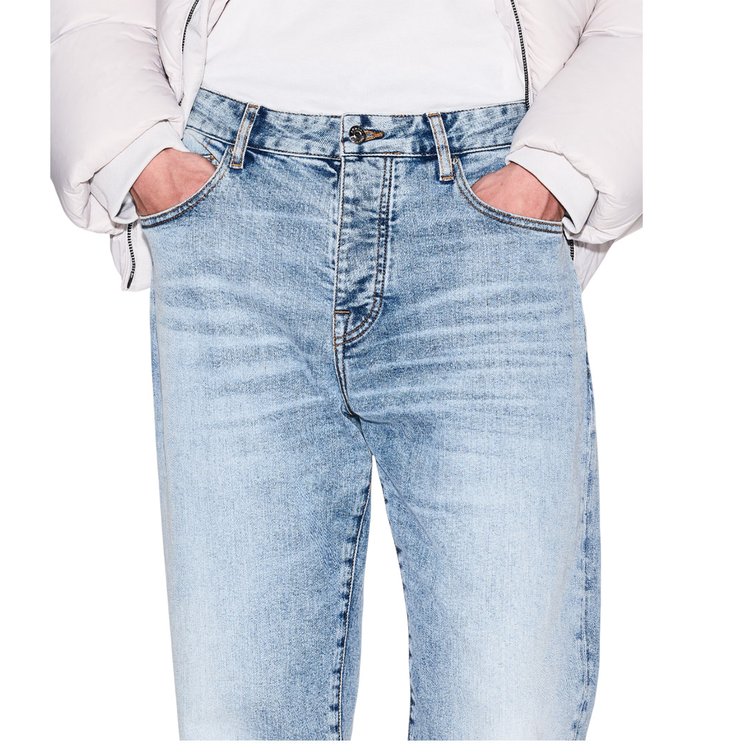 Jeans cinque tasche realizzati in denim elasticizzato di alta qualità, pensati per offrire comfort e stile in ogni occasione. La vestibilità slim esalta la silhouette mantenendo una vestibilità confortevole grazie alla naturale elasticità del tessuto. I dettagli leggermente délavé conferiscono un carattere vissuto ma ricercato, perfetto per look casual ricercati. Un modello essenziale nel guardaroba maschile contemporaneo.