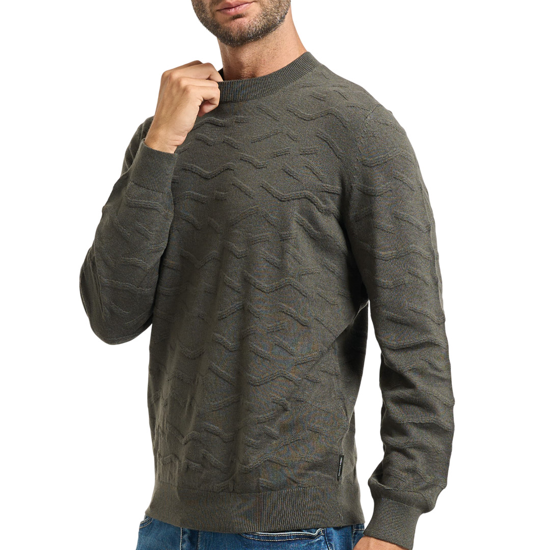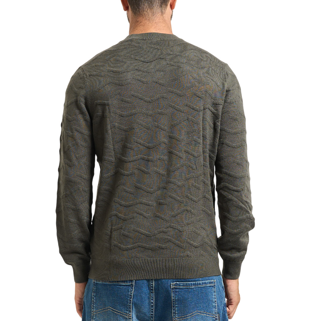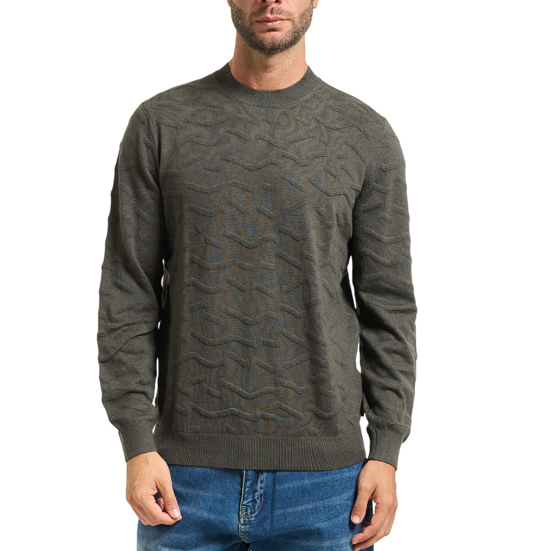 Maglione girocollo realizzato con una distintiva lavorazione a texture ondulata, che aggiunge profondità e carattere al capo. Questo modello unisce un design contemporaneo a un comfort avvolgente, rendendolo un elemento versatile per il guardaroba maschile. Perfetto per creare look dinamici ma raffinati, si adatta sia a contesti casual che a occasioni che richiedono un tocco di originalità.