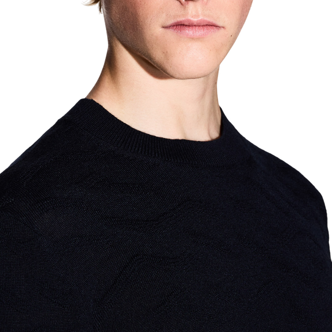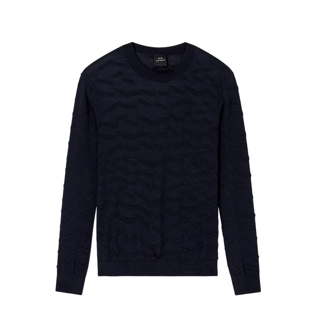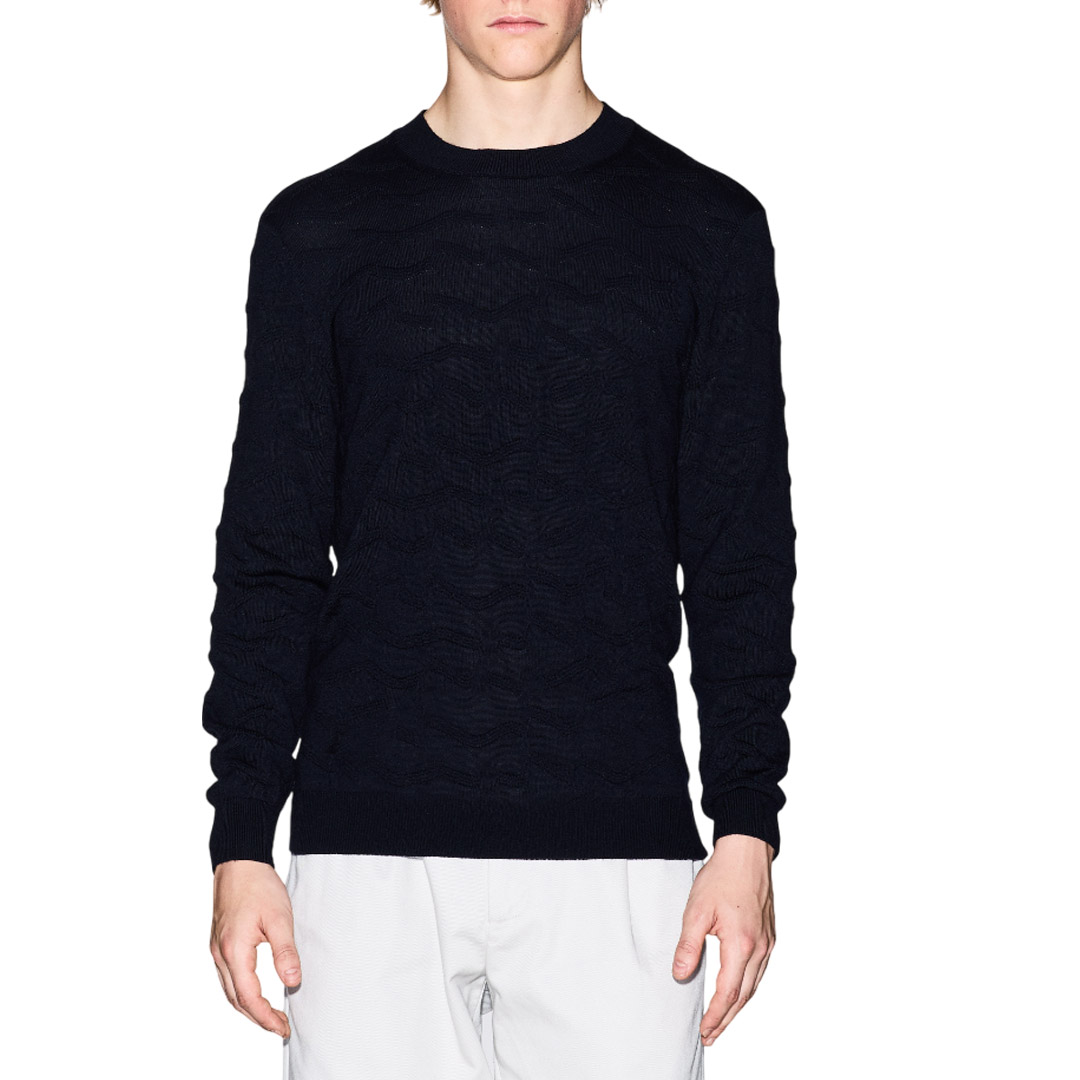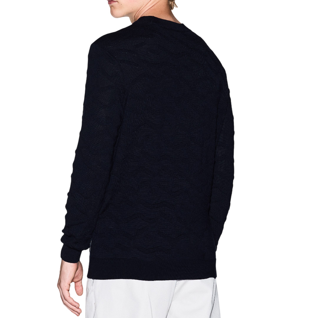 Maglione girocollo realizzato con una distintiva lavorazione a texture ondulata, che aggiunge profondità e carattere al capo. Questo modello unisce un design contemporaneo a un comfort avvolgente, rendendolo un elemento versatile per il guardaroba maschile. Perfetto per creare look dinamici ma raffinati, si adatta sia a contesti casual che a occasioni che richiedono un tocco di originalità.