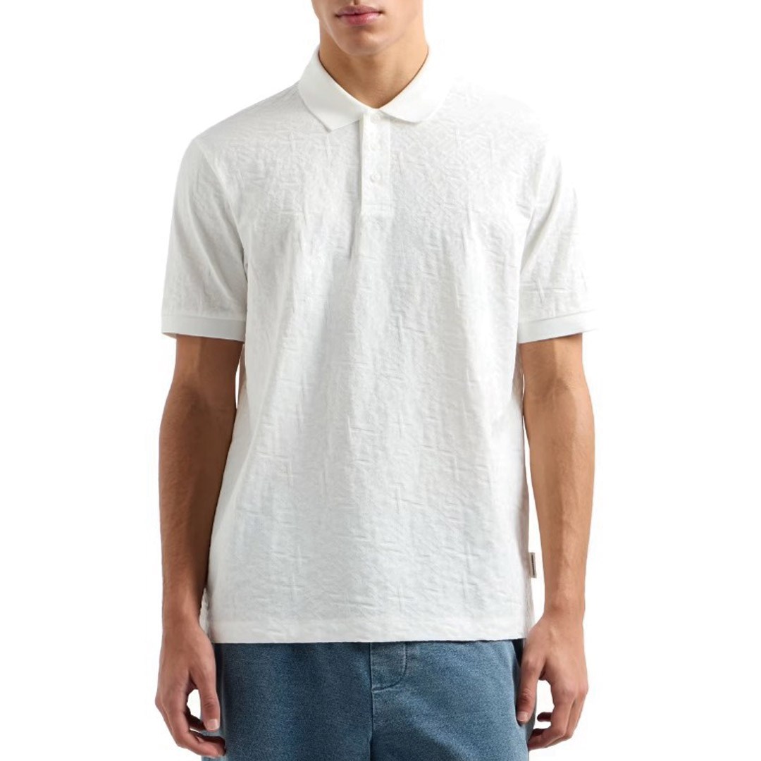 Questa polo a maniche corte in tessuto mercerizzato offre un look elegante e raffinato grazie alla sua finitura lucida e al delicato logo allover tono su tono jacquard. Il colletto classico e i bottoni completano il design, conferendo un tocco di sofisticazione discreta. Il tessuto leggero e traspirante la rende ideale per le giornate calde, mentre la sua versatilità permette di abbinarla facilmente a jeans o pantaloni chino. Un capo intramontabile per un guardaroba stiloso e confortevole. Polo a maniche corte Tessuto mercerizzato con logo allover tono su tono jacquard Colletto Bottoni