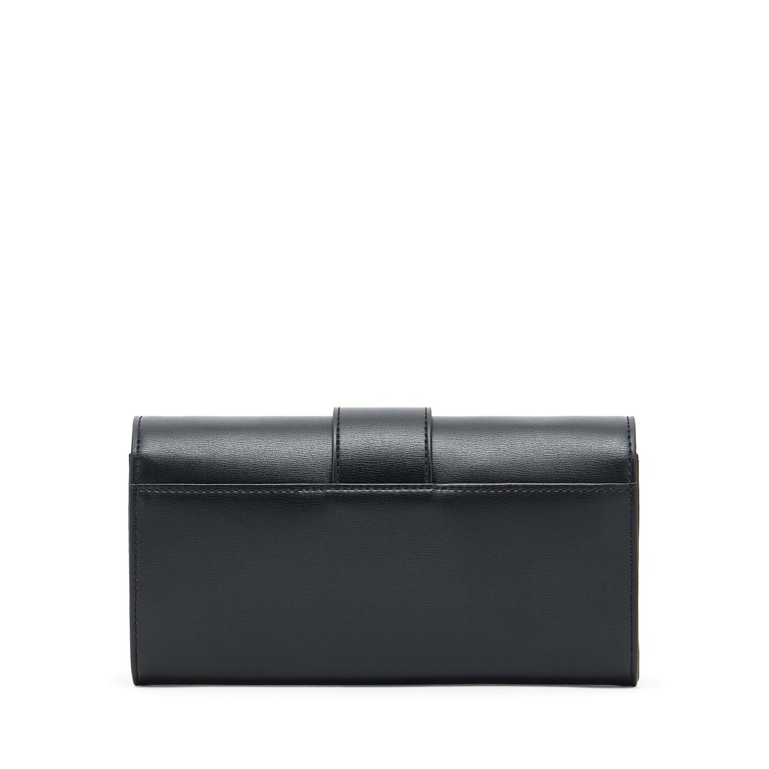 Portafoglio con tracolla, un accessorio versatile e raffinato. Realizzato in materiale liscio, presenta un design elegante e minimalista, arricchito dal logo in metallo che dona un tocco distintivo. La tracolla removibile permette di indossarlo come borsa compatta o utilizzarlo come portafoglio tradizionale. Gli scomparti interni ben organizzati offrono spazio per carte, banconote e altri oggetti essenziali. Perfetto per chi cerca praticità e stile, è ideale per completare ogni look con un dettaglio sofisticato. Portafoglio con catena a traccola In materiale liscio Tracolla in catena Dettaglio con logo Fessure interne Dimensioni: 19 x 3 x 12 cm