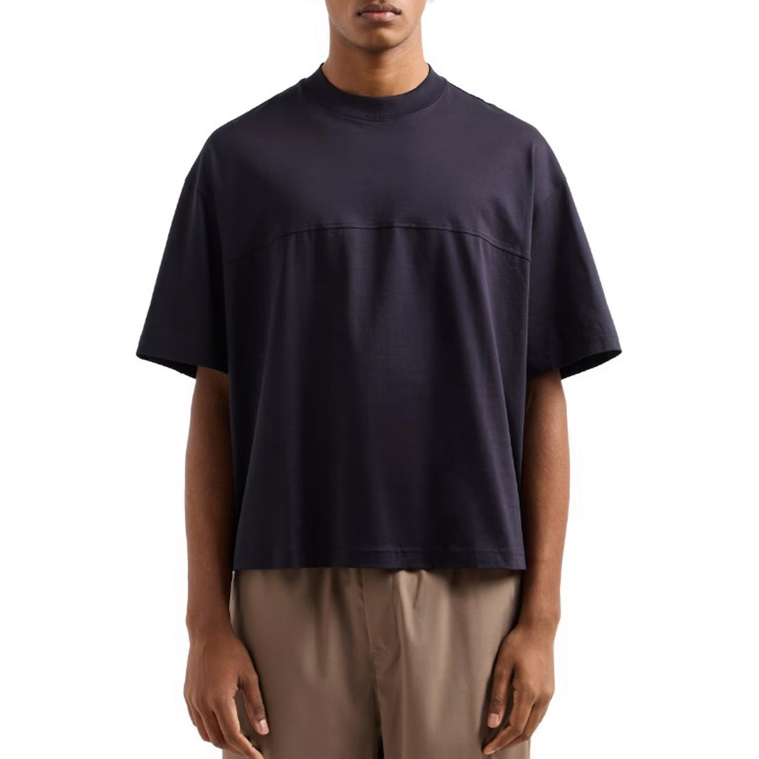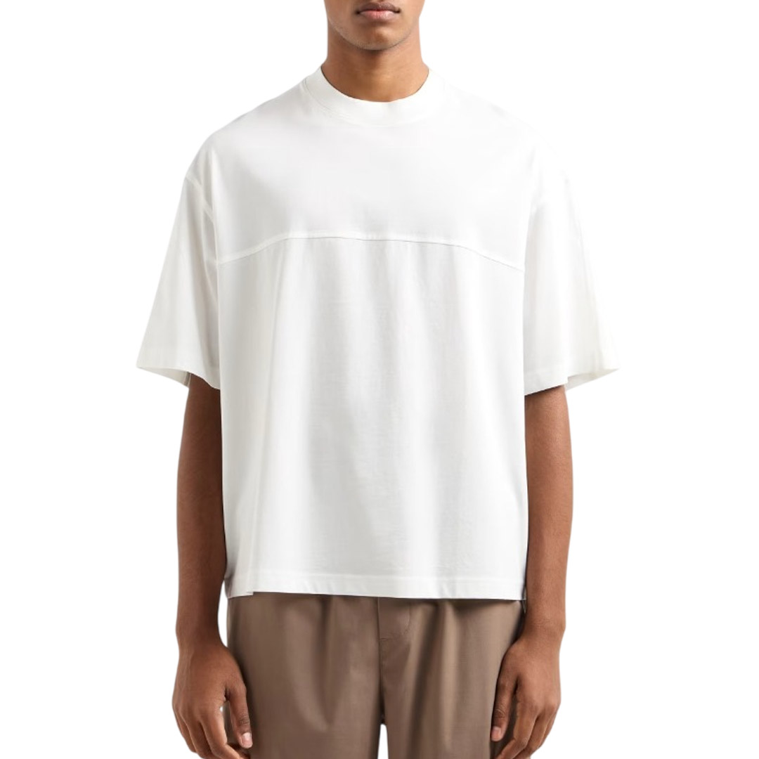 Felpa a maniche corte in cotone mercerizzato, ideale per un look casual e sofisticato. Il trattamento mercerizzato conferisce al tessuto una lucentezza raffinata e una maggiore resistenza, garantendo comfort e qualità. Lo scollo tondo offre un design classico, mentre la riga decorativa tono su tono sul petto aggiunge un dettaglio elegante e moderno. Perfetta per un outfit versatile, questa felpa combina stile e praticità, rendendola una scelta ideale per occasioni informali o abbinamenti quotidiani. Felpa a maniche corte Cotone mercerizzato Scollo tondo Riga decorativa sul petto tono su tono