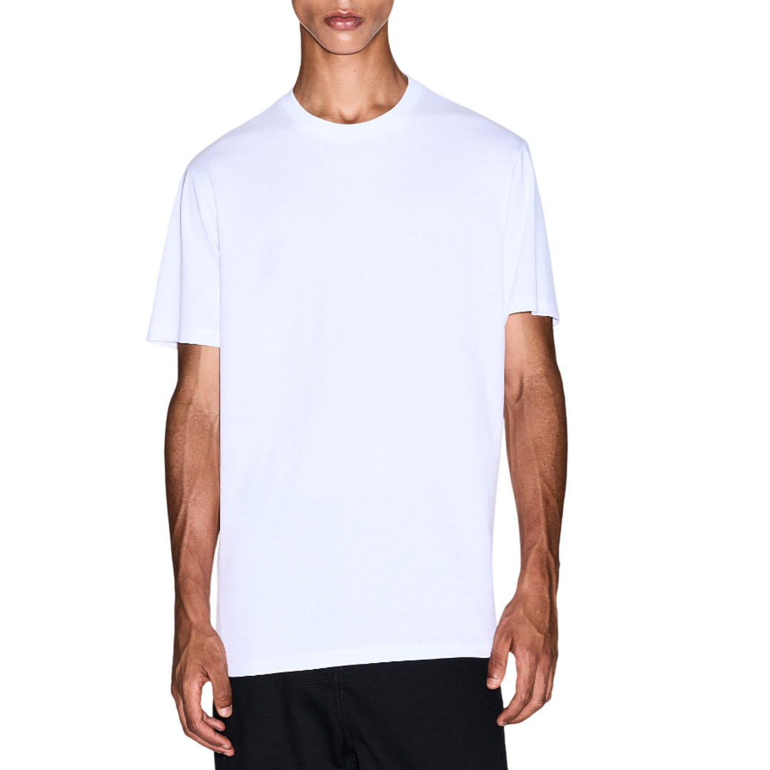 T-shirt realizzata in morbido jersey di cotone, un vero essential per chi ama lo stile minimal ma con un tocco distintivo. Questo capo si fa notare per l'elegante lettering "Armani Exchange Milano / New York" stampato tono su tono sul petto, un dettaglio sofisticato che non urla ma si fa apprezzare. Con il suo classico girocollo e le maniche corte, offre comfort e una versatilità incredibile per i tuoi look quotidiani.