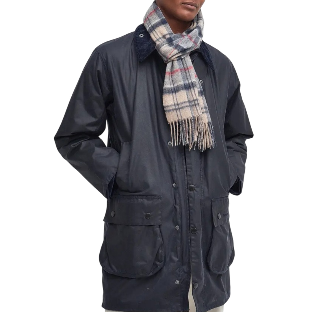 Da un pregiato mix di lana e cashmere nasce questa sciarpa morbidissima, perfetta per le giornate fredde. Caratterizzato da un motivo tartan all-over firmato Barbour, l'accessorio multifunzionale è rifinito con un classico orlo con nappe. 180 cm x 25 cm