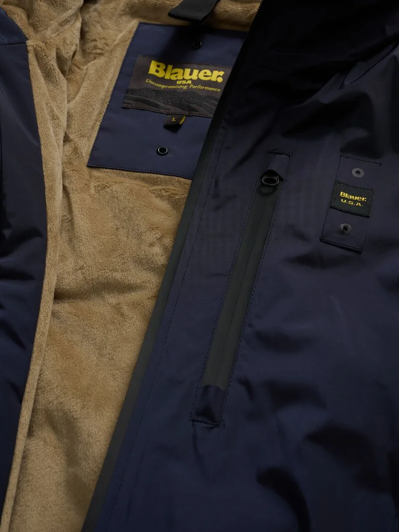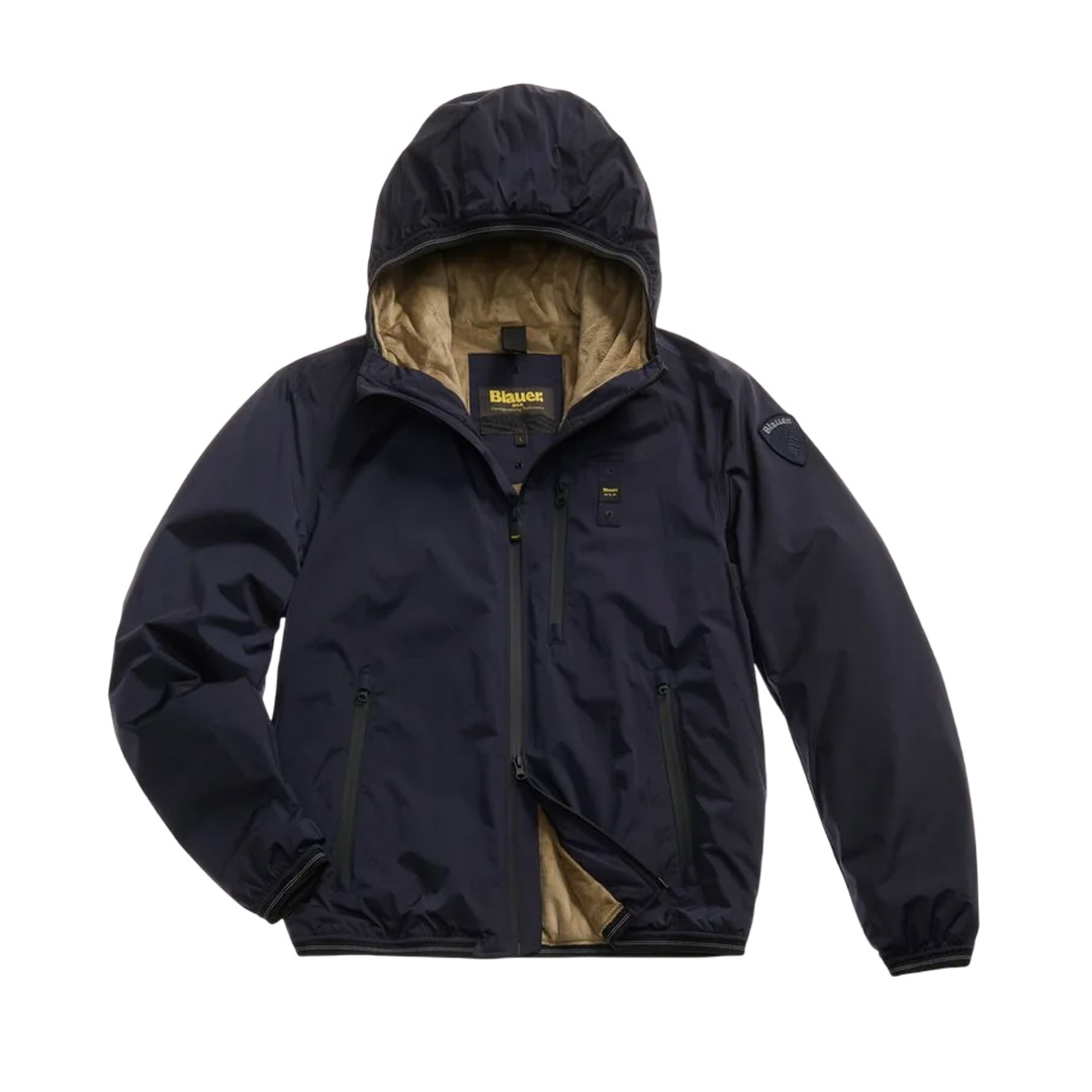 Giubbetto liscio esternamente ma con pelliccia ecologica morbida e calda all’interno. Tessuto idrorepellente con cuciture interne nastrate thermofix. Capo per chi vuole rimanere coccolato anche nelle giornate piovose. • Cappuccio fisso • Imbottito ovatta leggera • Foderato in pelliccia ecologica nel corpo • Cuciture interne termosaldate • Chiusura con zip spalmata in contrasto colore • Copri coulisse sul collo • Elastico rigato sul bordo del cappuccio, del fondo e della manica • Tasche con zip spalmata • Tasche interne con velcro • Patch e passante con logo