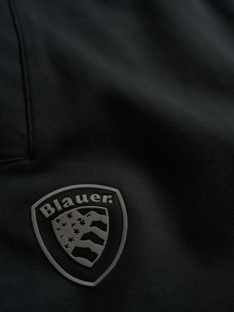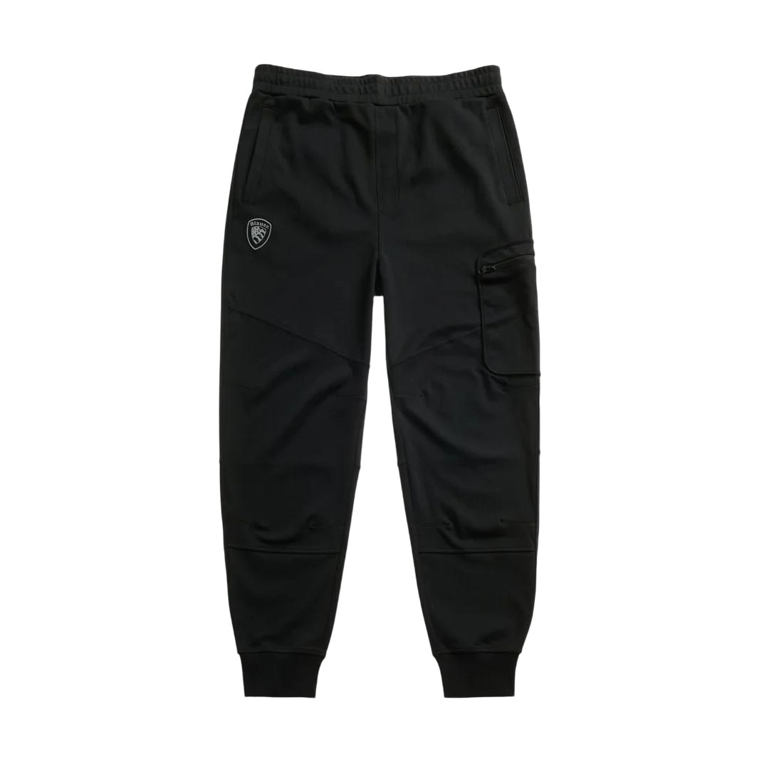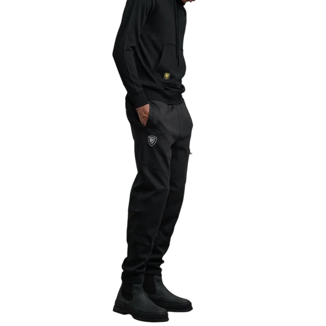 Pantalone in felpa con elastico in vita e logo Blauer gommato e rifrangente sotto la tasca. Taschina con zip applicata nella gamba. • Coulisse interna • Pinces sulle ginocchia • Polsino stretto con costina • Quattro tasche aperte • Tasca con zip • Logo gommato