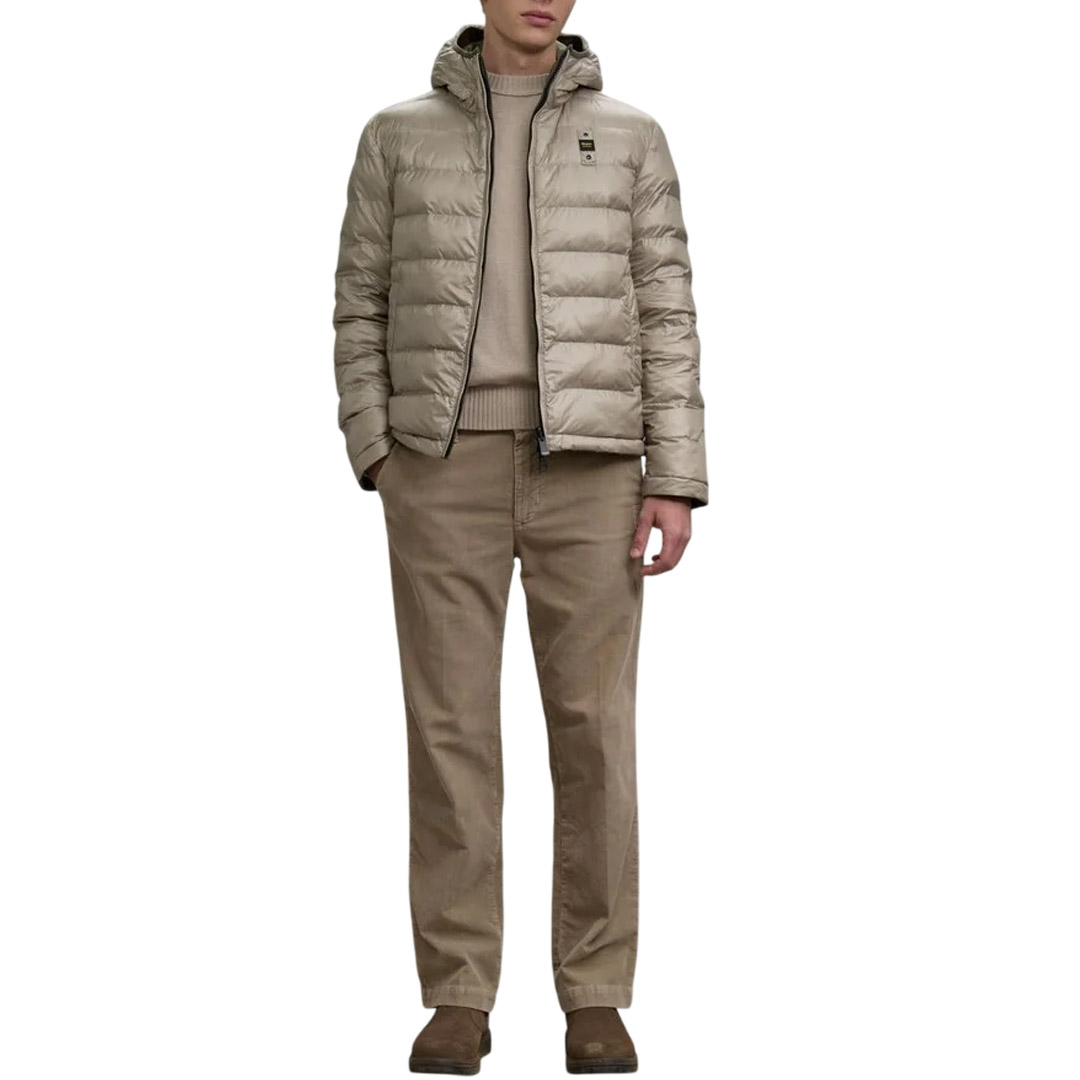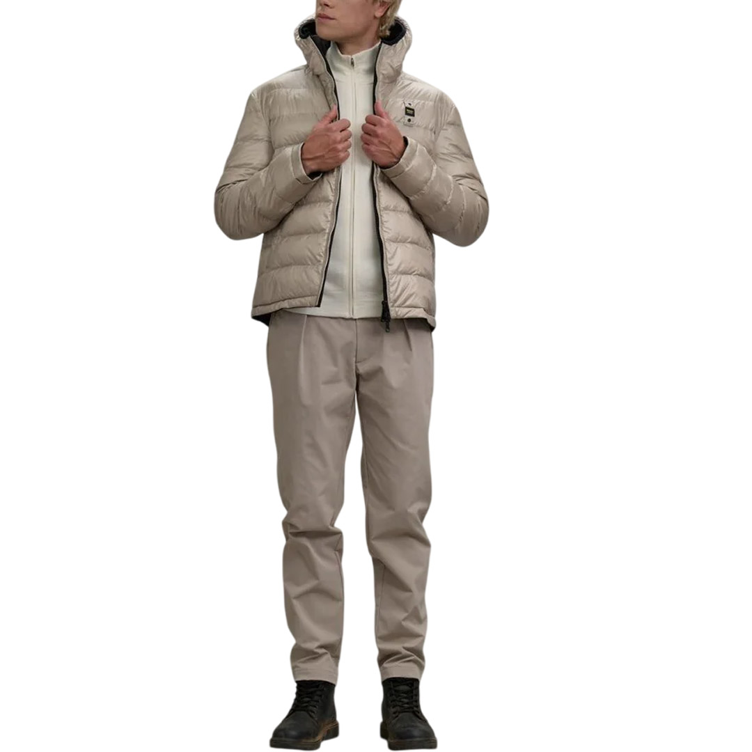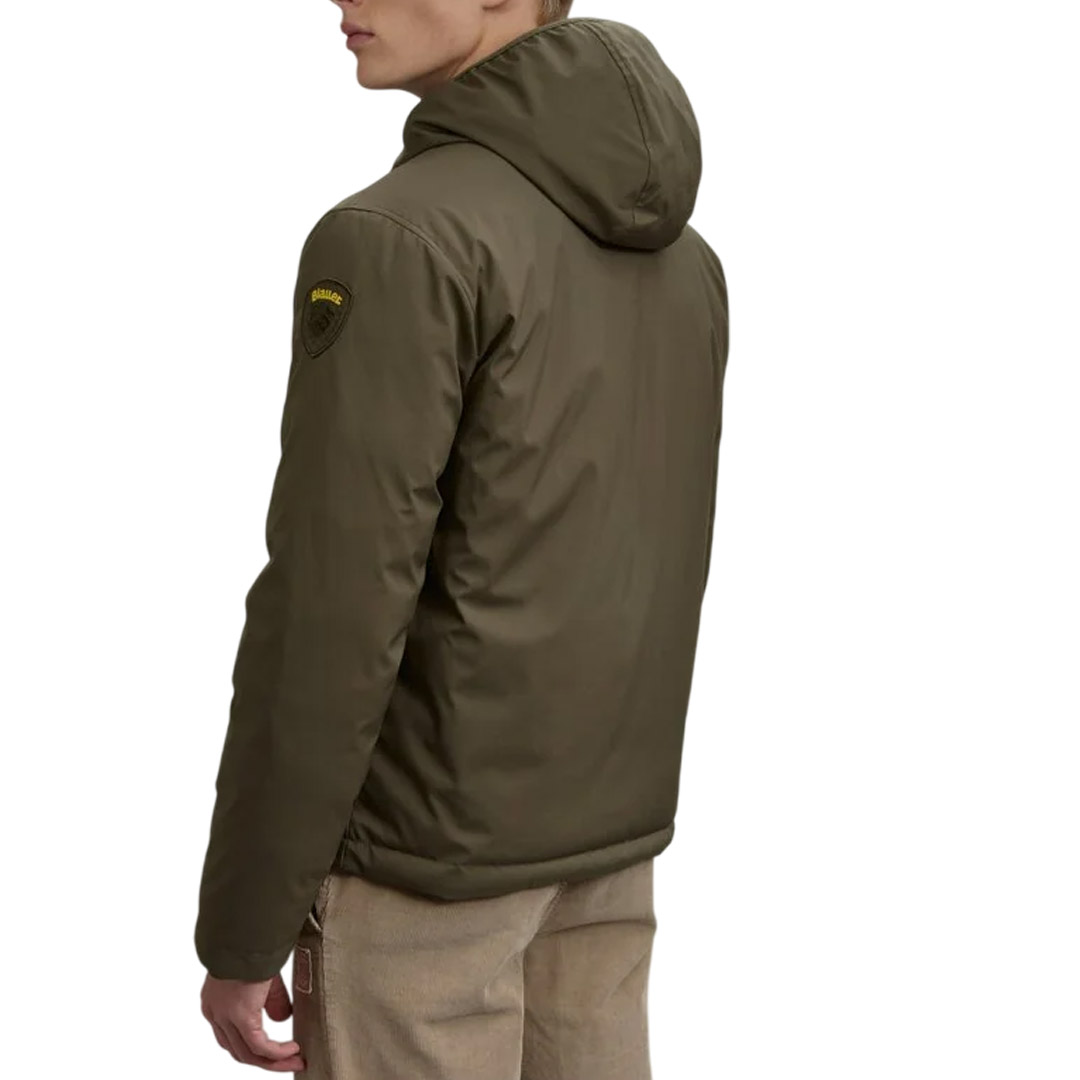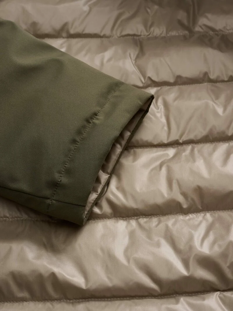 Piumino idrorepellente reversibile liscio da un lato e trapuntato a righe orizzontali dall’altro. Capo versatile da utilizzare in due versioni una più elegante e una più casual. • Cappuccio fisso con bordo in lycra • Realizzato in neoprene liscio da un lato • Realizzato in nylon lucido dall’altro • Imbottito 50% piuma e 50% ovatta • Chiusura con zip reversibile • Tasche con zip da un lato e con automatico dall’altro • Patch all’esterno e passante con logo in entrambi i lati