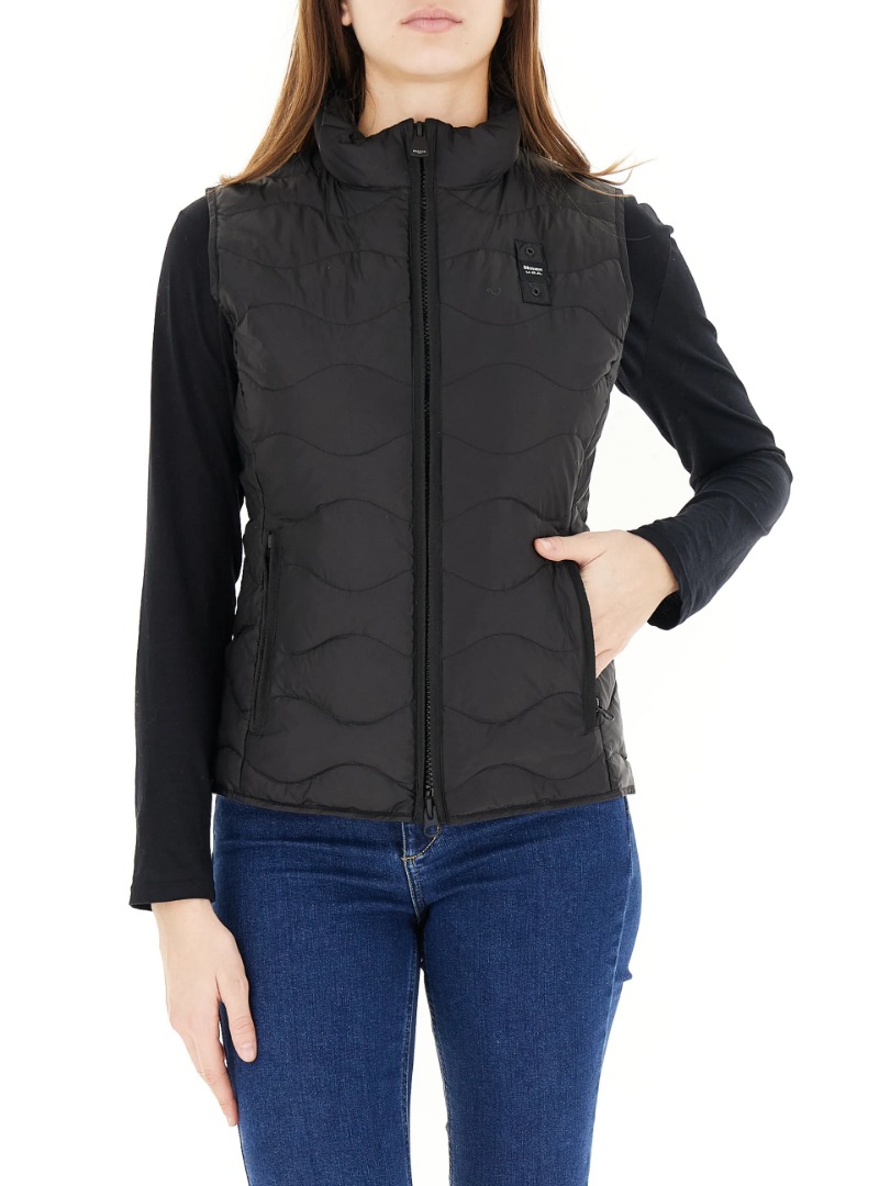 Giubbetto senza maniche con imbottitura sostenibile ed impunturato ad onde. • Chiusura con zip • Imbottito ovatta Sorona® • Tasche con zip • Tasche interne con velcro • Passante con logo