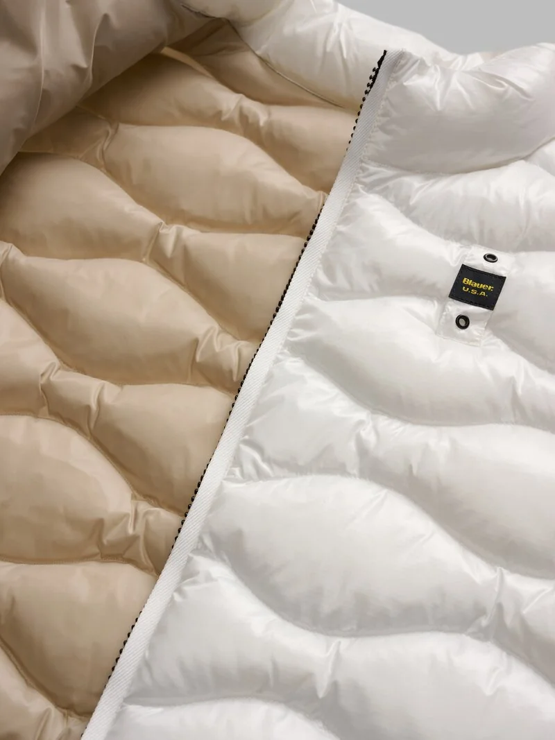 Giubbetto uomo idrorepellente in nylon micro-rip con leggero motivo check. Capo imbottito in ovatta per offrire il maggior calore, comfort e mantenere la forma nel tempo. • Realizzato in nylon micro rip • Foderato in contrasto colore • Imbottito ovatta Sorona® Aura • Chiusura con zip nascosta • Tasche con zip nascosta • Tasche interne con velcro • Passante con logo
