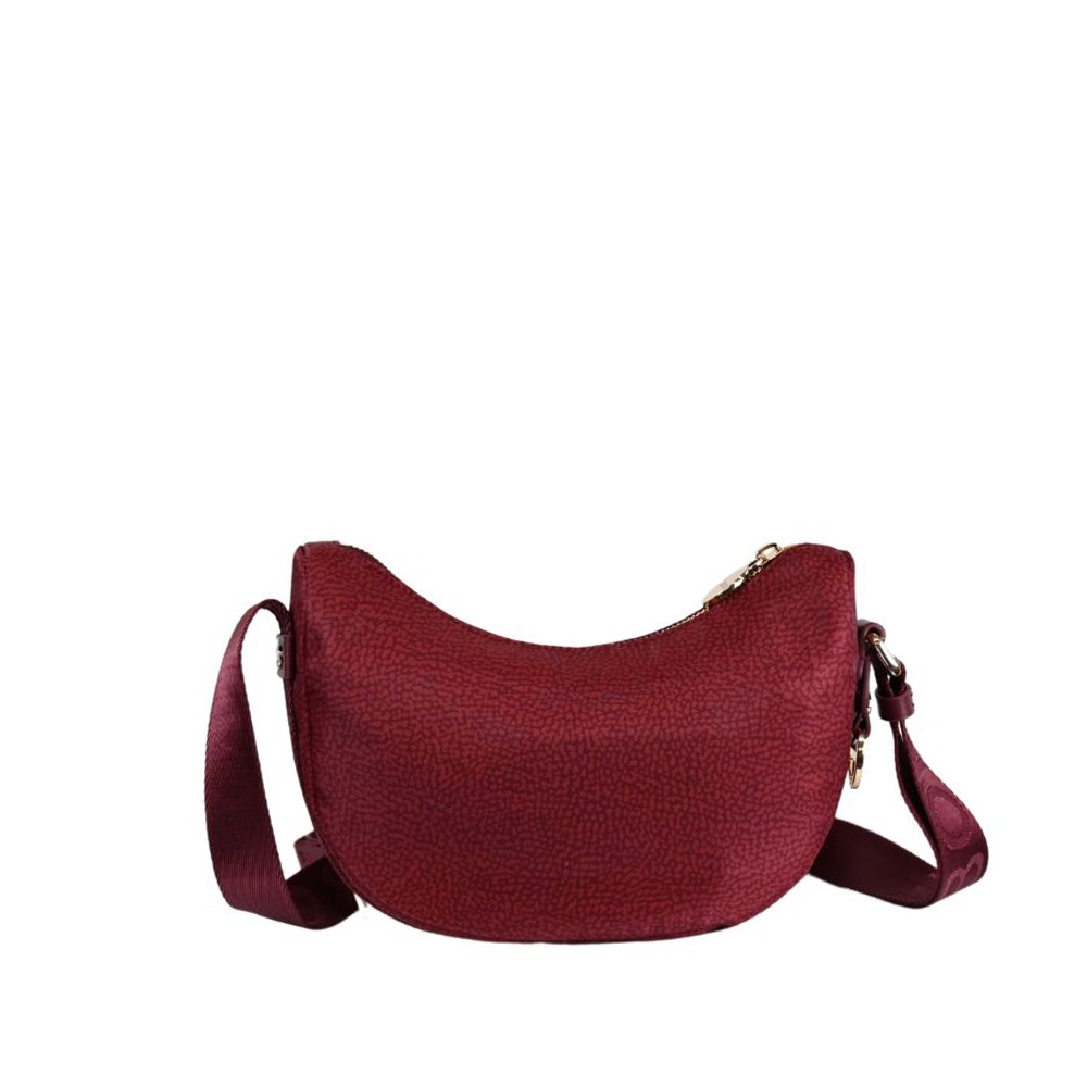 Tessuto riciclato stampato Op Dettagli di pelle di vitello Tasca esterna con zip Tasca aperta sul retro Chiusura regolata con zip Tirazip di metallo a forma di vite logata Cinghia per tracolla regolabile in nastro logato Tasca interna aperta Fodera di tessuto riciclato jacquard op Metallerie oro chiaro Misure tracolla: Min 28 cm Max 60 cm Misura mini