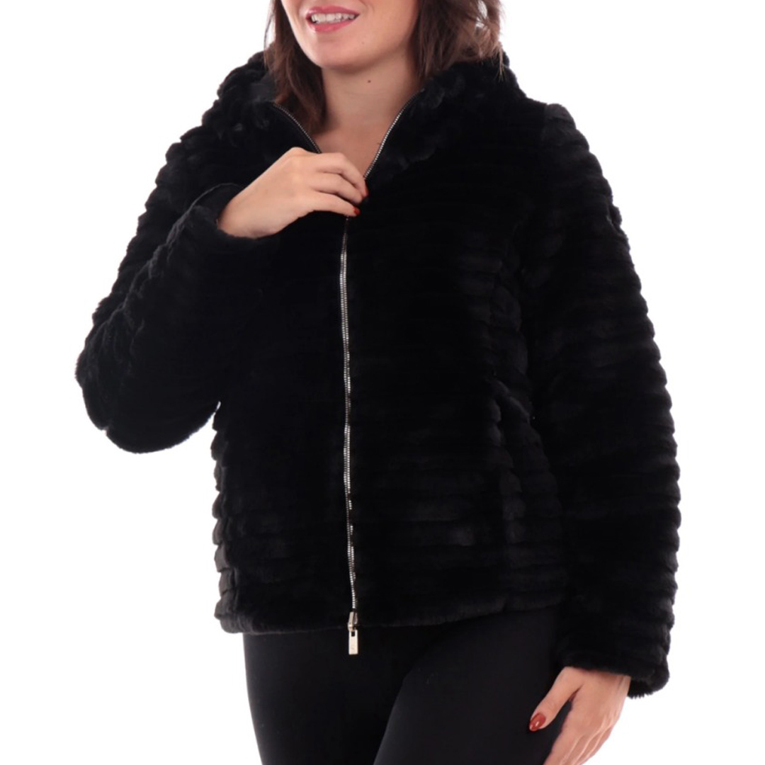 Giubbino reversibile Ciesse Piumini nero da donna, reversibile dalla linea leggermente sagomata realizzato in tessuto impermeabile a tinta dalla texture opaca, da un lato, e in ecopelo con texture trapuntata dall'altro, nelle stesse tonalità. Il design del modello Naida è caratterizzato da un'allacciatura con zip metallica doppio cursore, cappuccio fisso e lunghezza corta. Un giubbino Ciesse da donna pensato per dare all'outfit un tocco sempre originale e di tendenza in qualsiasi situazione, assicurando il comfort senza rinunciare alla femminilità.