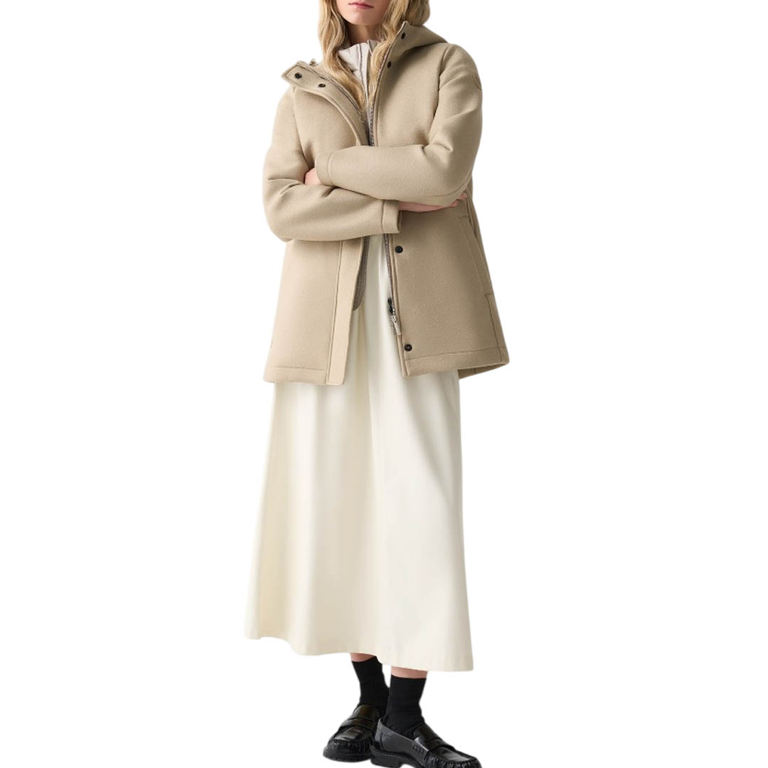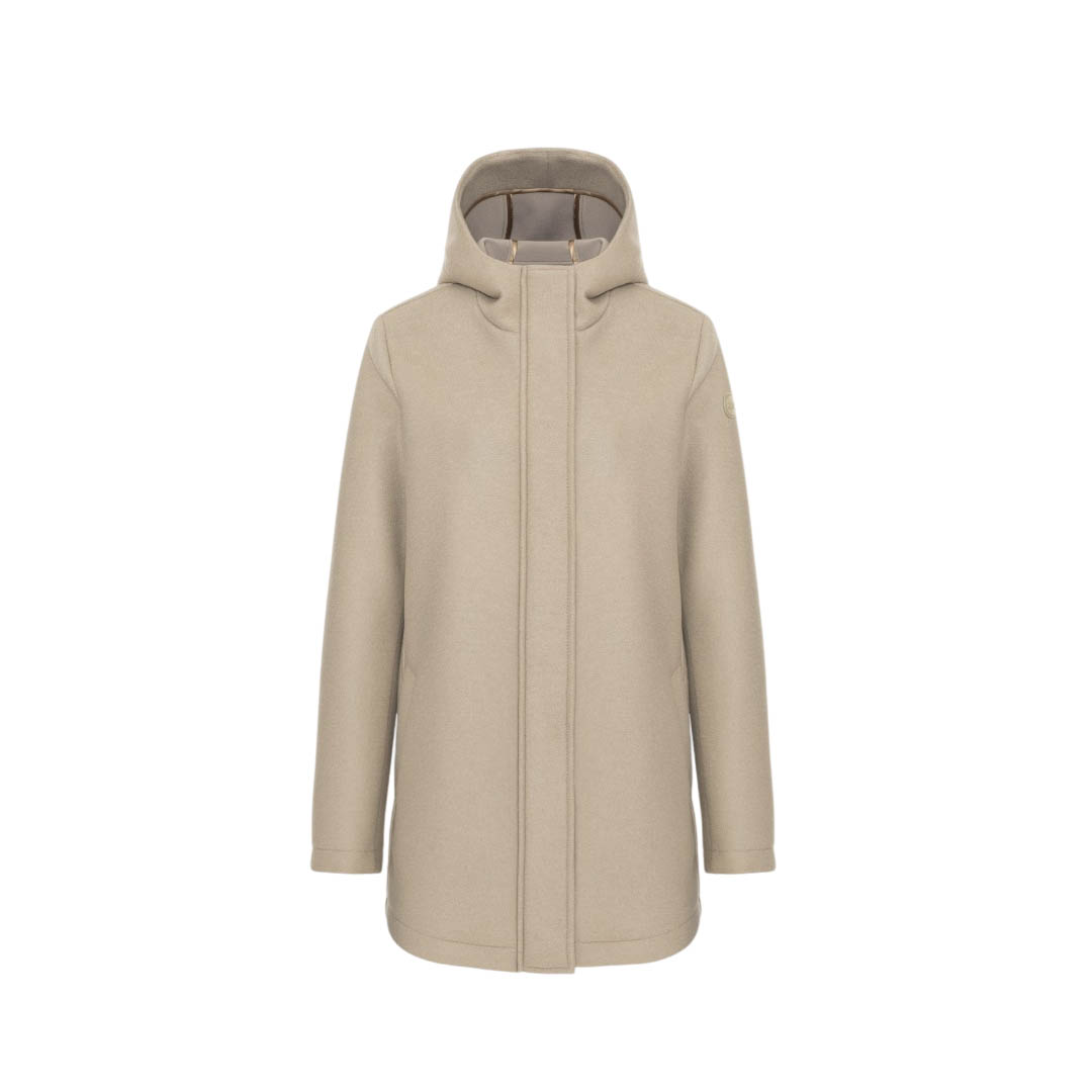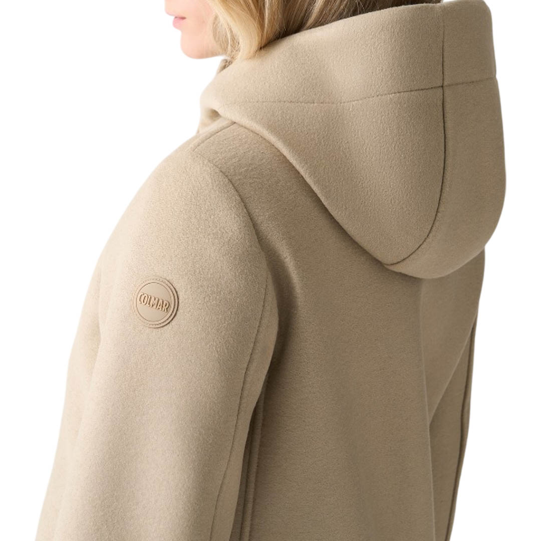Dinamico e versatile, questo cappotto in panno di lana abbraccia la silhouette con una linea sciancrata che valorizza la figura. Il cappuccio con coulisse aggiunge comfort nelle giornate fredde, mentre la chiusura con bottoni nascosti e il logo tono su tono ne definiscono l’eleganza essenziale. Completato da pratiche tasche laterali, è perfetto per affrontare l’inverno con stile. Da indossare anche con il gilet della collezione, Mod. 2083 2YO, grazie all’apposito nastro, per aggiungere uno strato extra di calore nei giorni più freddi. Chiusura con zip doppio cursore e bottoni a pressione Cappuccio fisso con coulisse di regolazione Tasche laterali Nastro tricolore con clip all'interno del collo Logo Colmar Originals applicato sulla manica sinistra Patch "C" applicato sul retro