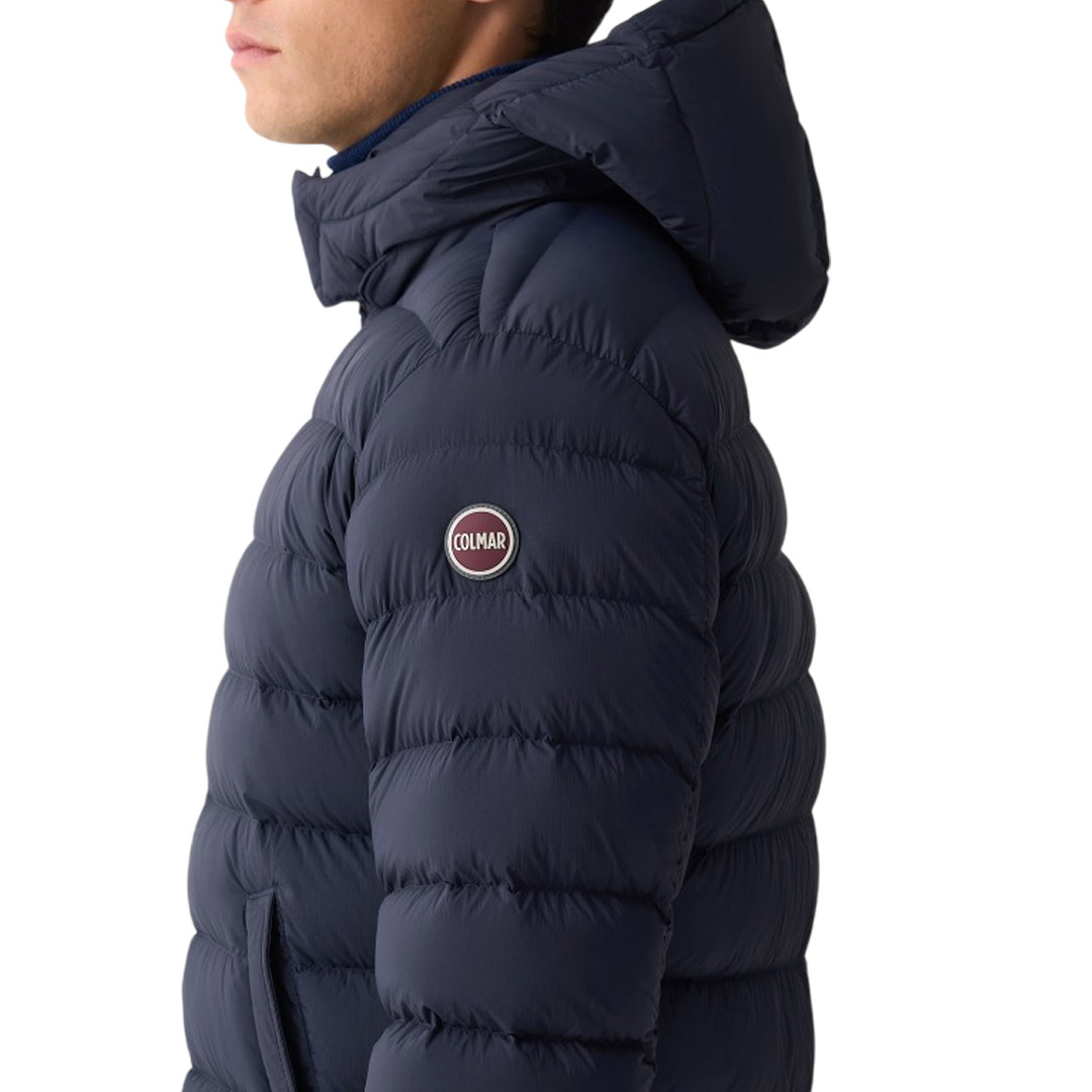 Simbolo di Colmar, questo capo si distingue per il cappuccio rimovibile, che lo rende versatile in ogni situazione. Le tasche laterali e la coulisse sul fondo garantiscono comfort, mentre l'imbottitura in piuma naturale offre il calore ideale per le giornate invernali. Chiusura con zip doppio cursore Cappuccio staccabile Tasche laterali con zip Tasca interna con zip Coulisse di regolazione sul fondo Imbottitura in piuma naturale Tessuto 100% riciclato Logo Colmar Originals applicato sulla manica sinistra Patch "C" applicato sul retro