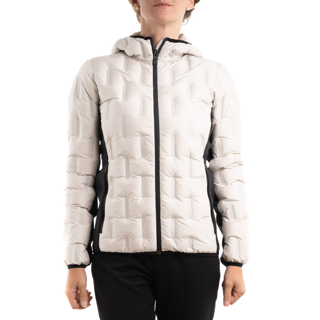 Giacca da donna con cappuccio fisso realizzata in tessuto di poliestere e softsthell stretch impermeabile (10.000mm) e traspirante (10.000 gr/m2/24). Il tessuto tubico utilizzato per la base è stato ottenuto incollando, tramite micro disegni geometrici sfalsati, due tessuti in poliestere. L'effetto trapuntato che si crea non necessita di cuciture. Look sportivo per questo capo che unisce tecnologia e confort grazie agli inserti di tessuto stretch su fianchi e sottomaniche ed all'interno in morbido piumino naturale. Ideale da indossare in tutte le occasioni di outdoor invernale o da abbinare ad uno shell come strato intermedio. Il trattamento idrorepellente ecosostenibile Teflon EcoElite™, fa parte del progetto Colmar Green Path per il rispetto dell’ambiente. Trattamento idrorepellente ecosostenibile Teflon EcoElite® Chiusura con zip Tasche laterali con zip Tessuto ecosostenibile Imbottitura in piuma idrorepellente Cappuccio fisso Maniche con curvatura ergonomica Nastro elastico su fondo, polsi e cappuccio Inserti in tessuto stretch Logo Colmar in contrasto sul fianco sinistro