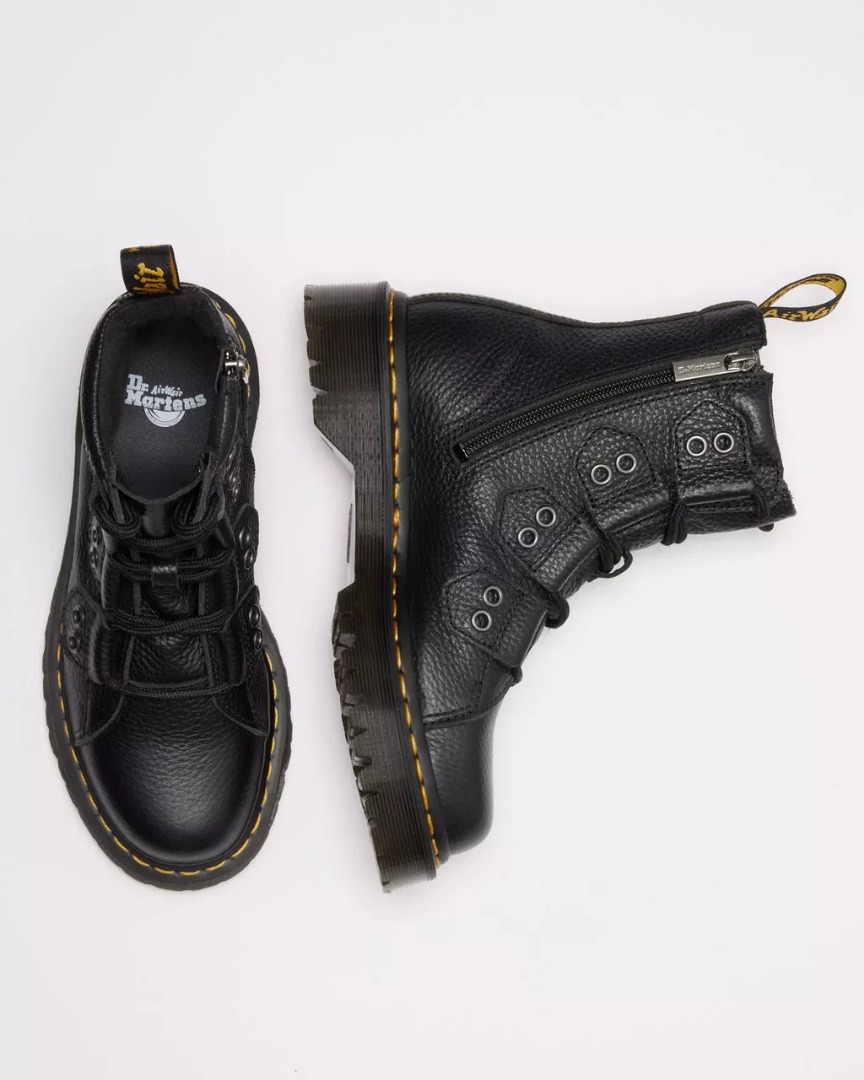 Lascia il segno su tutta la linea. Gli stivali 1460 Bex sono pronti a darti più volume, più texture, più altezza. Realizzati in pelle Milled Nappa, uno dei materiali più morbidi che abbiamo per renderti la calzata comoda fin dal primo passo. Sono rifiniti da linguette di pelle laterali con occhielli decorativi argentati e lacci intrecciati in mezzo. Poggiano su una suola fumé Bex per dare qualche centimetro in più di altezza, ulteriormente rinforzata dalle nostre caratteristiche cuciture gialle. Milled Nappa è una pelle di medio peso, morbida e con una rifinitura a grana larga.
