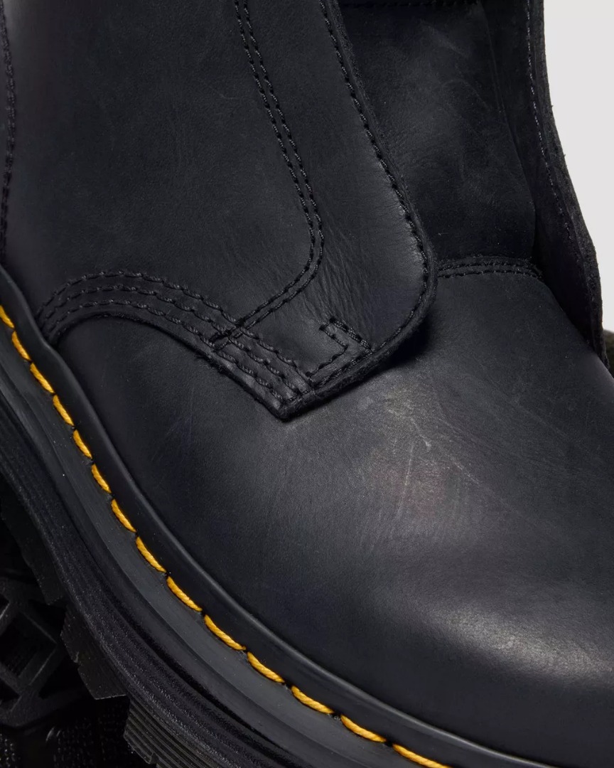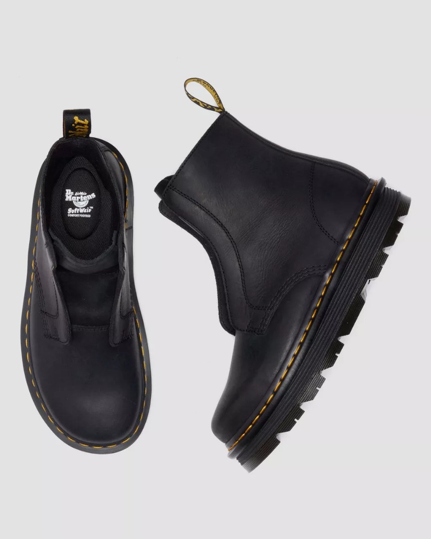 Vivi giornate leggere con i nostri nuovi stivali Zebzag Laceless. Realizzati in robusta pelle Wyoming, questa comoda silhouette rielabora il nostro storico design 1460, trasformandolo in un modello senza lacci. Minimo sforzo, massimo impatto. La suola ergonomica Zebzag fonde insieme leggerissima EVA con robusti inserti PVC per garantire una calzata comoda e senza stress. Con sottopiede SoftWair e segni distintivi Dr. Martens: bordo scanalato, caratteristiche cuciture gialle e linguetta AirWair sul tallone. Wyoming è una pelle oliata e bottolata, dalla grana fine per un aspetto robusto e, allo stesso tempo, casual.