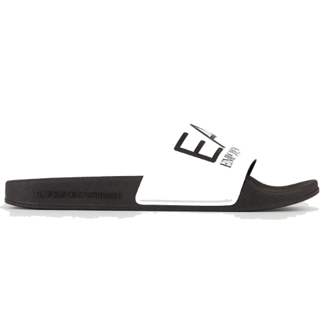 Ciabatte slider definite dalla fascia decorata dal maxi-logo EA7. Suola in gomma antiscivolo.