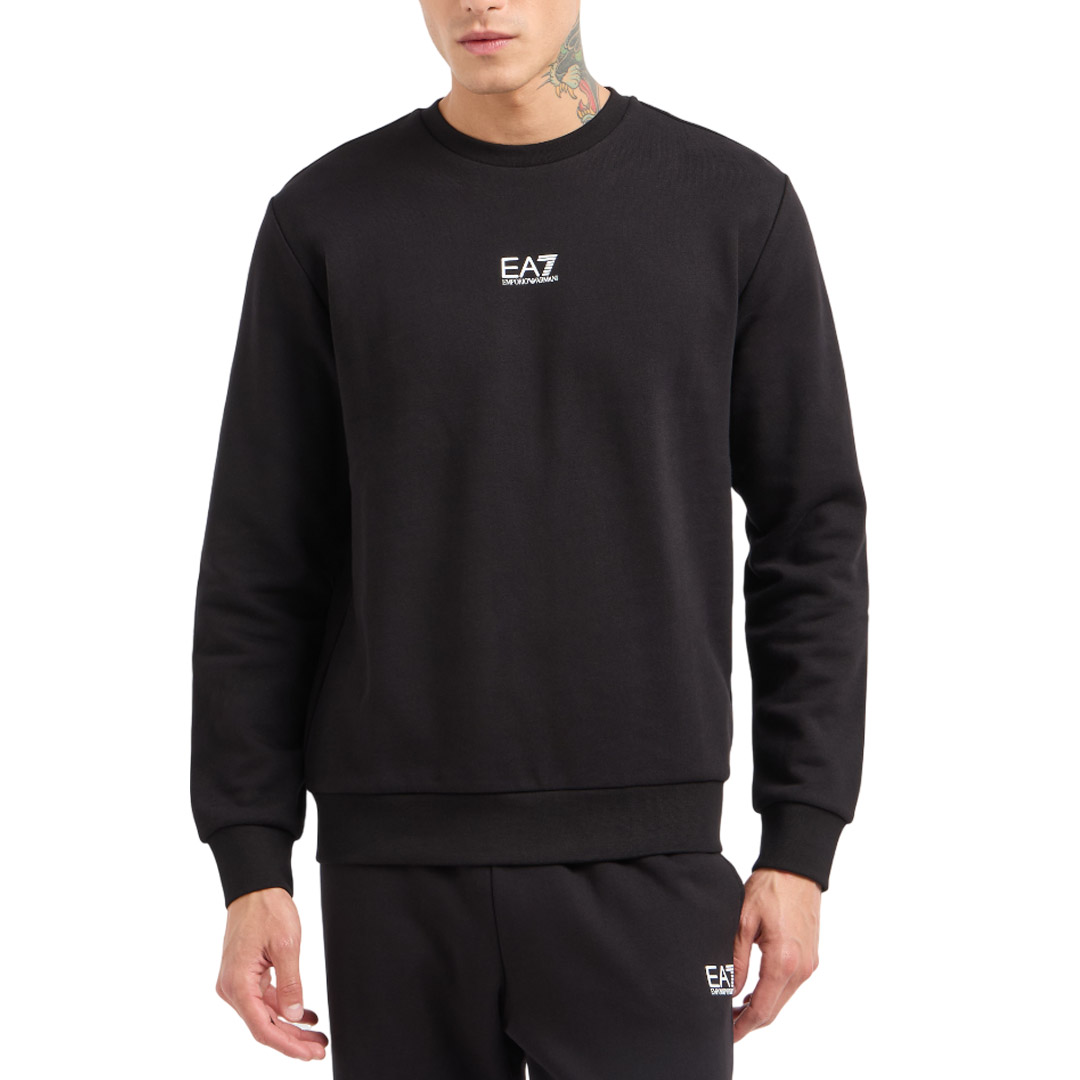 EA7 Emporio Armani felpa realizzata in maglia elasticizzata. Il modello con interno leggermente imbottito garantisce morbidezza e aumenta il comfort di utilizzo. - Un classico girocollo rotondo. - Polsini e orlo rifiniti con un comodo cordino elastico. - Taglio dritto che consente libertà di movimento. - Patch del logo sul davanti. - Tessuto elasticizzato lavorato a maglia.