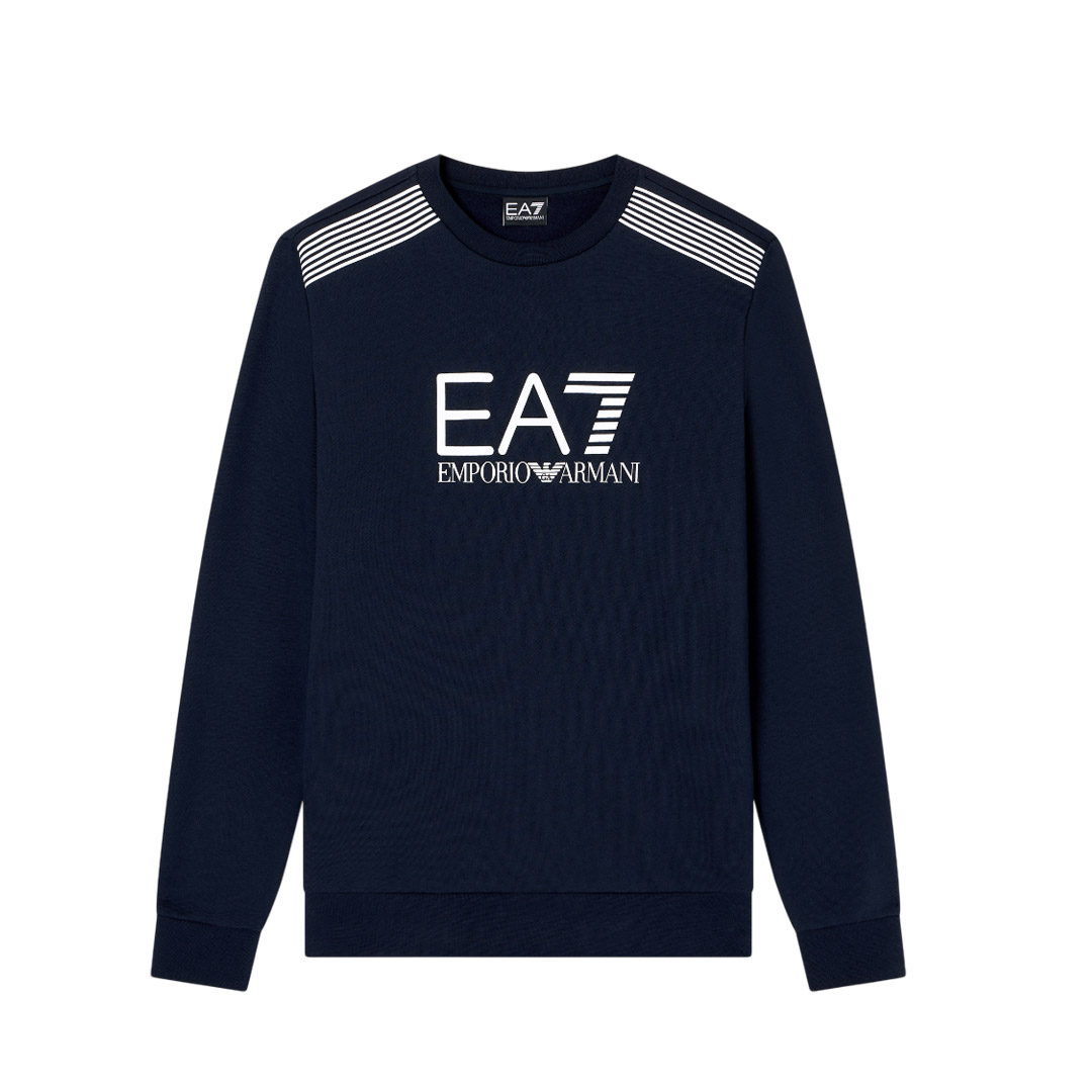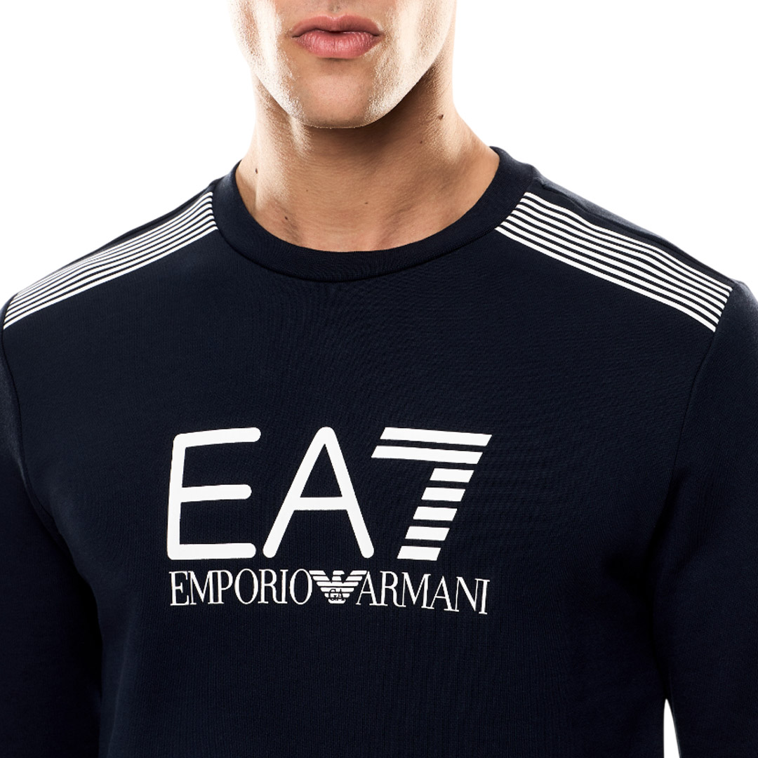 Felpa girocollo realizzata in misto cotone, dalla vestibilità morbida. Il modello, dalle linee essenziali e pulite, è impreziosito dal motivo 7 linee sulle spalle e personalizzato dal logo EA7 a contrasto sul petto. Il numero "7", che rappresenta graficamente il mondo dello sport e i suoi valori, viene rappresentato da un motivo di linee in questa omonima proposta 7 Lines. Una selezione dallo stile giovane e trendy, dalla forte ispirazione anni '90, caratterizzata da fit rilassati e colori versatili e pieni.