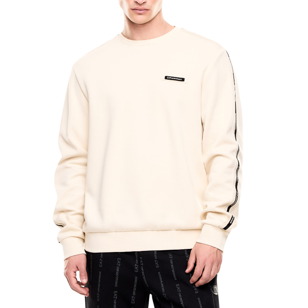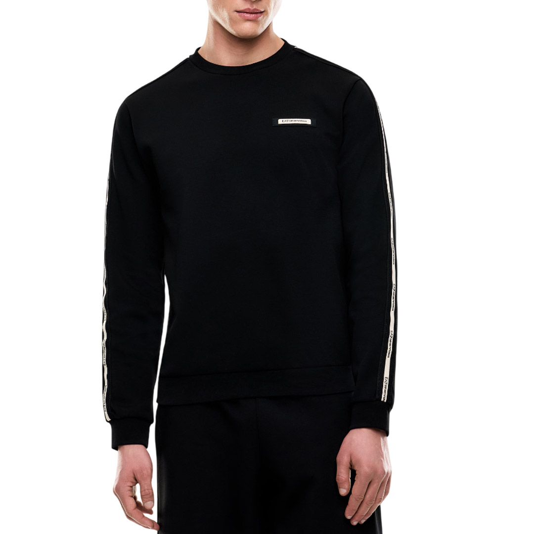Felpa girocollo realizzata in morbido interlock di misto cotone. Il modello, è personalizzato dal logo tape EA7 a contrasto lungo i profili delle maniche e dal logo EA7 a contrasto sul petto., che richiama anche altri capi della collezione Logo Series