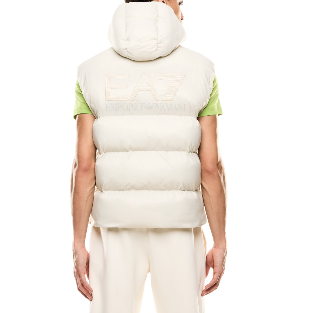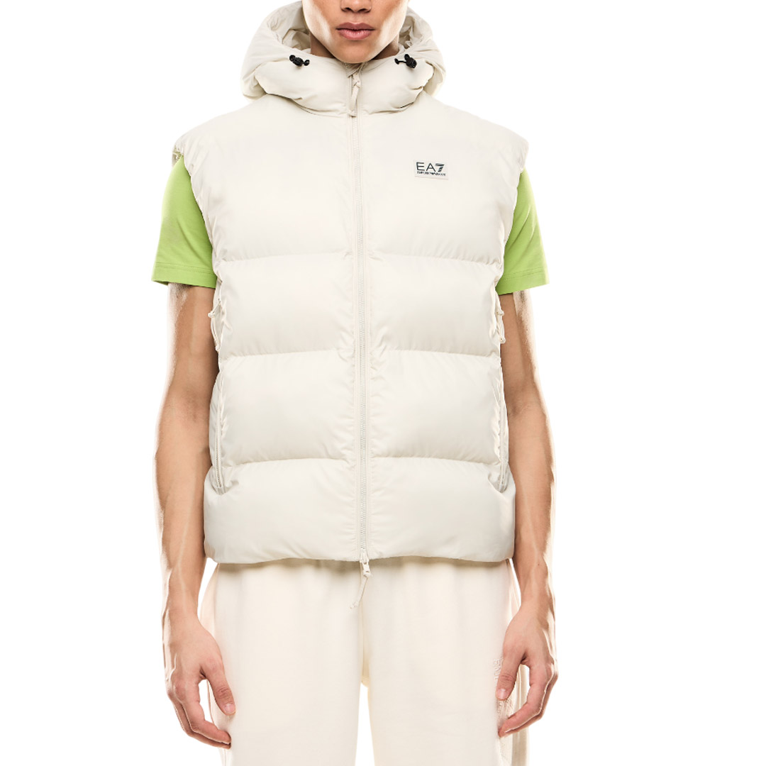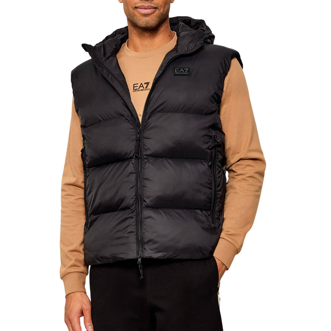 Gilet imbottito provvisto di pratico cappuccio fisso con coulisse, realizzato in tessuto tecnico e reso fin da subito riconoscibile grazie al maxi logo ricamato in tono sulla schiena. Il modello è dotato di chiusura frontale con zip, due pratiche tasche laterali e logo patch EA7 sul petto. Il capo è parte della proposta Winter Jackets, la selezione EA7 dedicata alle giacche invernali: modelli confortevoli e di tendenza, studiati per mantenere il corpo caldo senza rinunciare allo stile. Non importa dove ti trovi, puoi indossare le giacche EA7 sia in città che in ambienti di montagna, scegliendo il modello perfetto per ogni situazione. Protagonisti di questa stagione sono l'effetto color-block, grafiche e loghi audaci, tessuti effetto teddy e dettagli riflettenti.