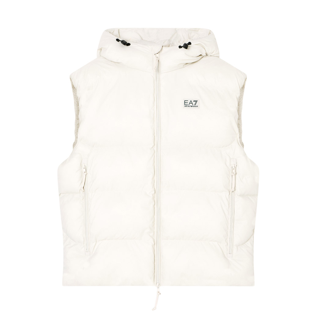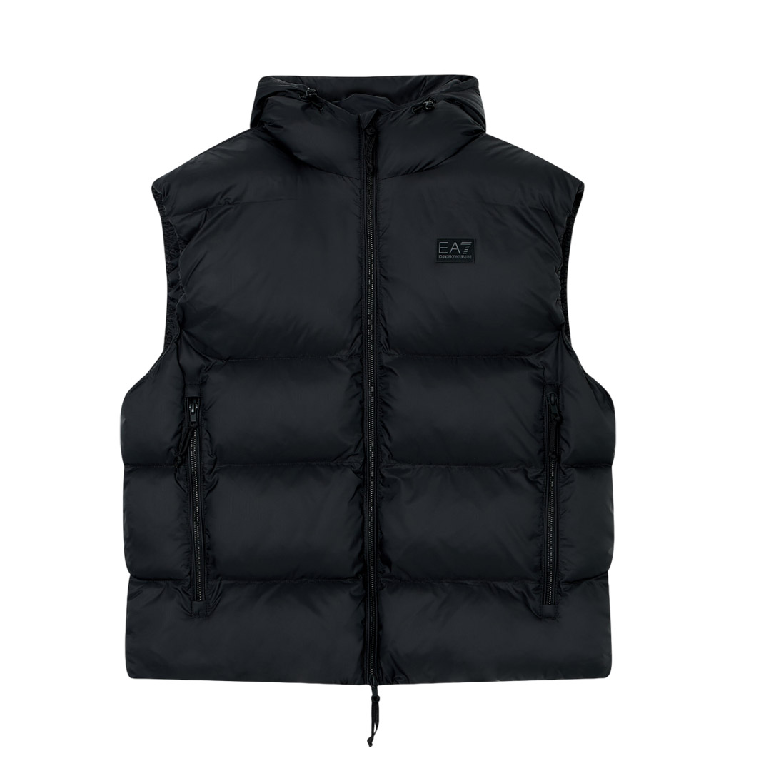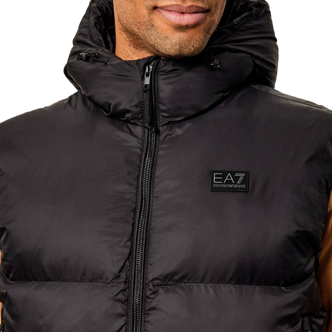 Gilet imbottito provvisto di pratico cappuccio fisso con coulisse, realizzato in tessuto tecnico e reso fin da subito riconoscibile grazie al maxi logo ricamato in tono sulla schiena. Il modello è dotato di chiusura frontale con zip, due pratiche tasche laterali e logo patch EA7 sul petto. Il capo è parte della proposta Winter Jackets, la selezione EA7 dedicata alle giacche invernali: modelli confortevoli e di tendenza, studiati per mantenere il corpo caldo senza rinunciare allo stile. Non importa dove ti trovi, puoi indossare le giacche EA7 sia in città che in ambienti di montagna, scegliendo il modello perfetto per ogni situazione. Protagonisti di questa stagione sono l'effetto color-block, grafiche e loghi audaci, tessuti effetto teddy e dettagli riflettenti.