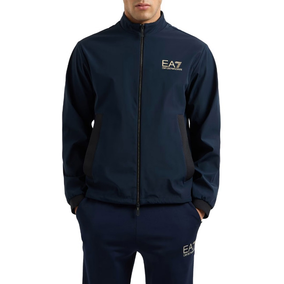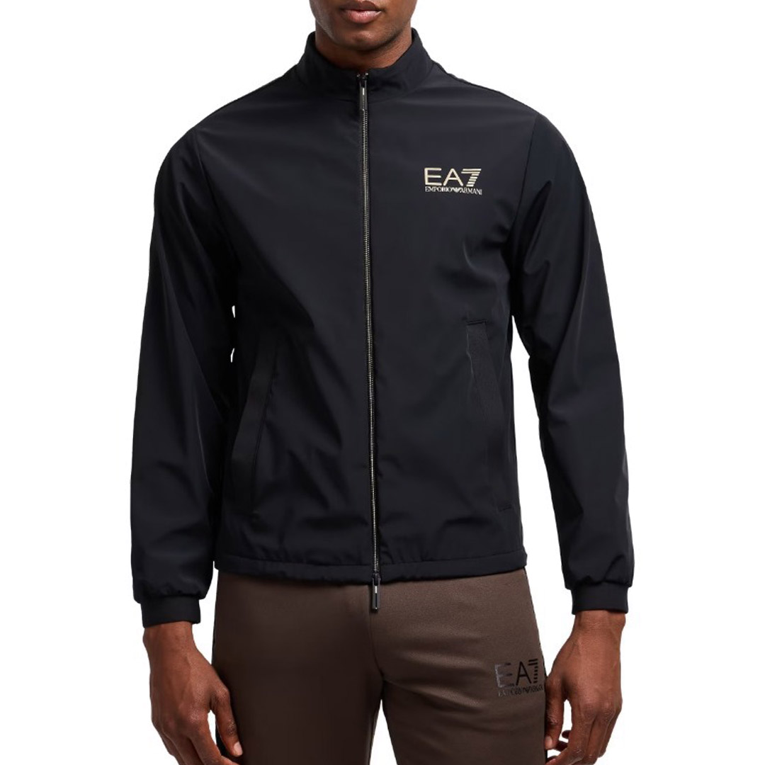 Giacca con zip realizzata in nylon stretch, caratterizzata dalla chiusura con zip e da due profonde tasche verticali zippate. Il modello, personalizzato con logo EA7 con finitura oro sul petto, è parte della proposta Gold Label, caratterizzata da uno stile più ricercato ed elegante: capi realizzati in tessuti confortevoli e personalizzati dall'inconfondibile tocco gold, per uno stile sporty chic. Vestibilità regular Collo montante Chiusura con zip Due tasche oblique Coulisse al fondo Logo EA7 a contrasto sul petto