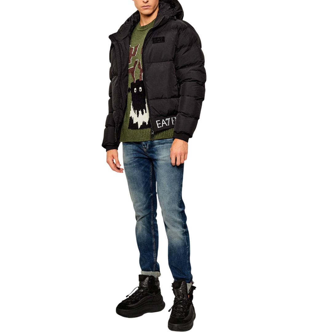 Giacca imbottita con cappuccio, realizzata in tessuto tecnico con trattamento anti-vento e anti-goccia che conquista per le sue linee essenziali e passepartout. Il modello presenta chiusura frontale con zip, due tasche laterali, personalizzazione logo patch EA7 sul petto ed è reso fin da subito riconoscibile grazie al dettaglio con stampa logo EA7 Emporio Armani sul fondo. Il capo è parte della proposta Winter Jackets, la selezione EA7 dedicata alle giacche invernali: modelli confortevoli e di tendenza, studiati per mantenere il corpo caldo senza rinunciare allo stile. Non importa dove ti trovi, puoi indossare le giacche EA7 sia in città che in ambienti di montagna, scegliendo il modello perfetto per ogni situazione. Protagonisti di questa stagione sono l'effetto color-block, grafiche e loghi audaci, tessuti effetto teddy e dettagli riflettenti.