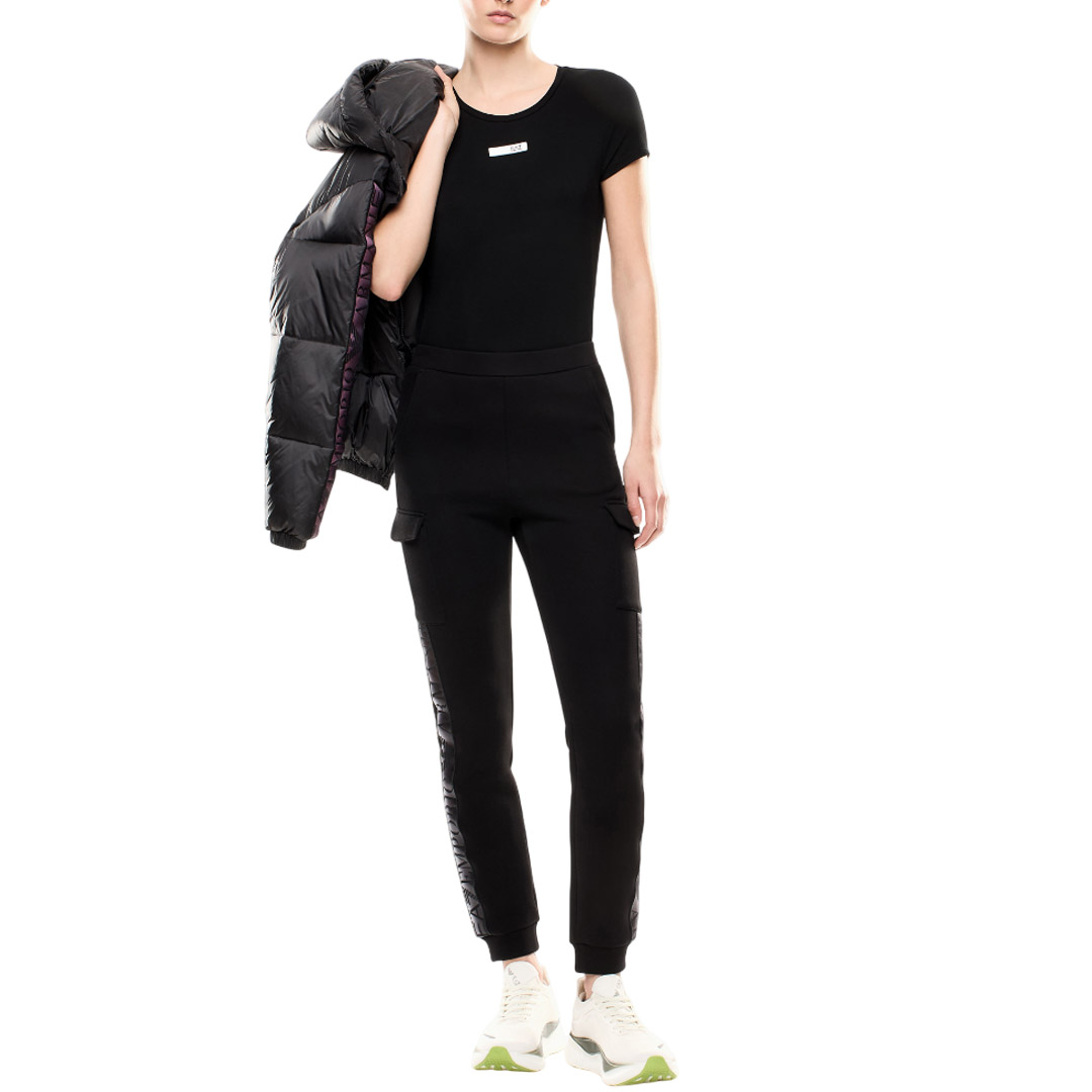 Pantaloni jogger modello cargo, personalizzati dal dettaglio con logo tape lungo il profilo delle gambe. Il modello provvisto di pratiche tasche applicate con aletta, è realizzato nell'innovativo tessuto tecnico Natural VENTUS7, composto da un mix di fibre naturali e sintetiche che permette di regolare la temperatura corporea espellendo il sudore come vapore acqueo, lasciando al tempo stesso una sensazione di comfort e morbidezza sulla pelle, grazie alla presenza delle fibre di cotone.
