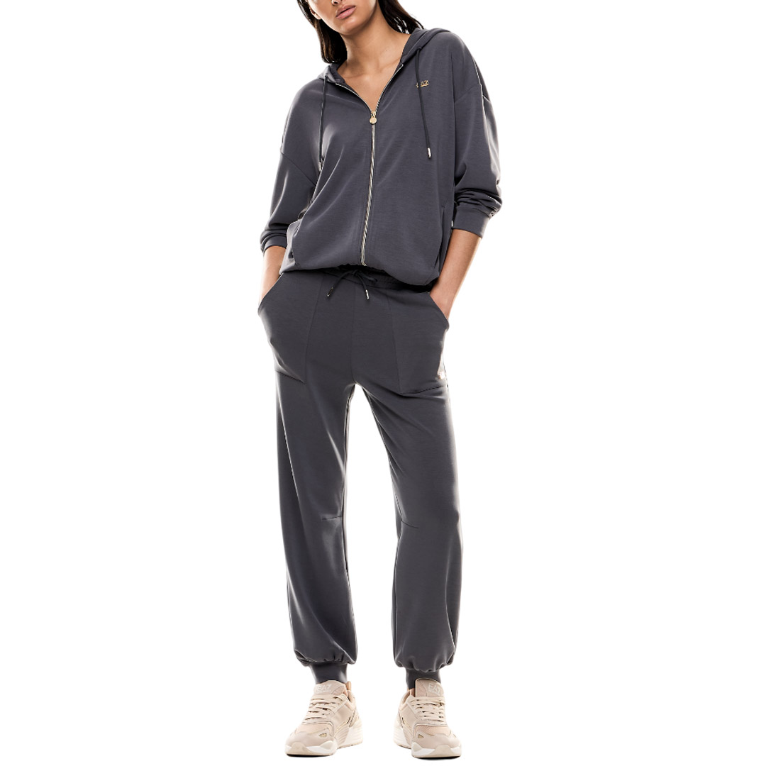 Pantaloni jogger realizzati in morbido tessuto misto modal stretch, personalizzati dal logo charm EA7 sul fianco sinistro. Un modello femminile con coulisse in vita e dotato di due tasche laterali applicate, ideale per assicurarti comfort sia durante le tue sessioni di allenamento sia nei momenti di relax, perfetto da abbinare alle felpe di collezione per creare total look versatili e di tendenza.