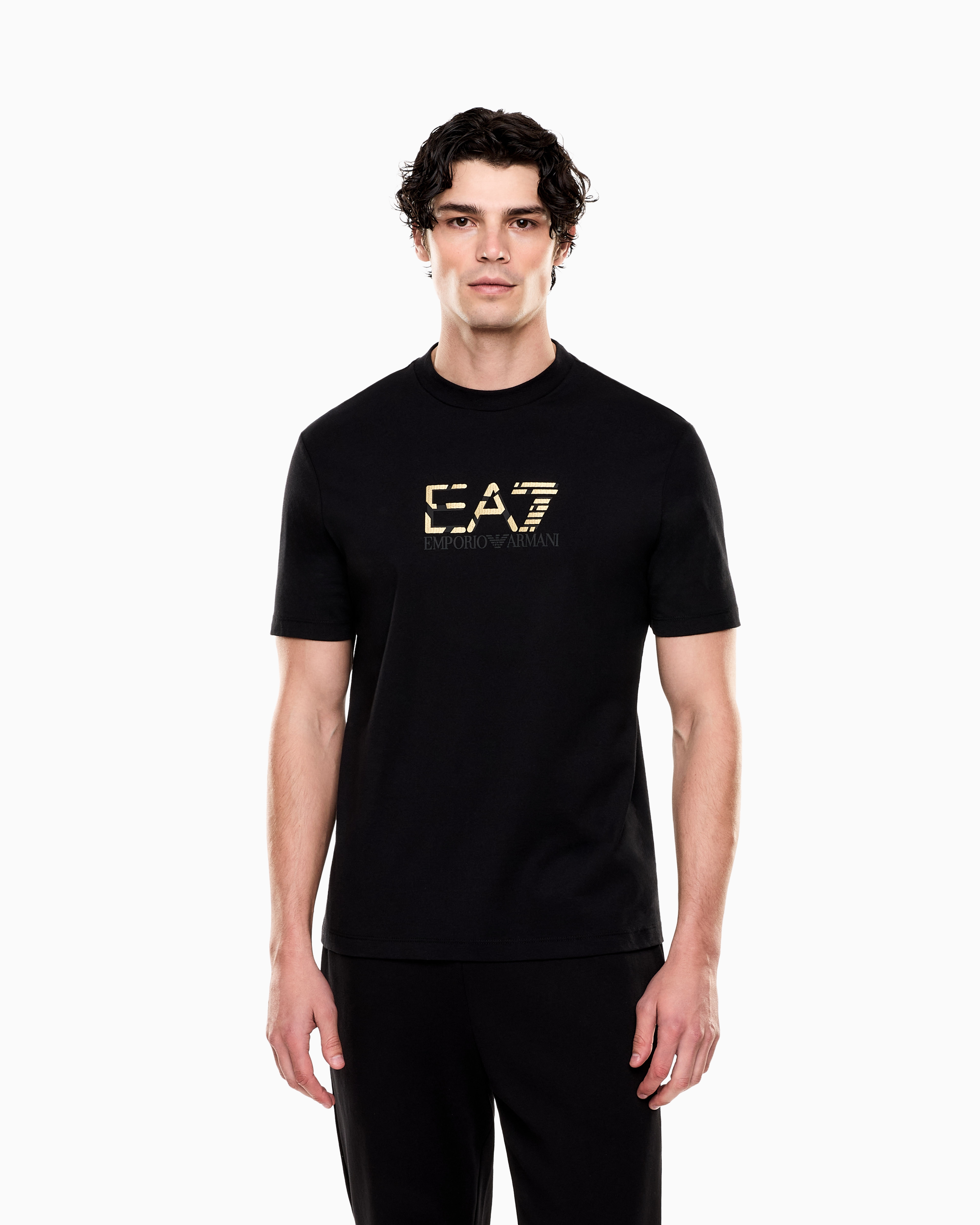 T-shirt girocollo realizzata in jersey di cotone, dalla vestibilità regular. Il modello presenta maniche corte e una personalizzazione con maxi logato EA7 sul petto. Un capo versatile ed essenziale, complemento ideale di numerosi look in chiave sportiva.