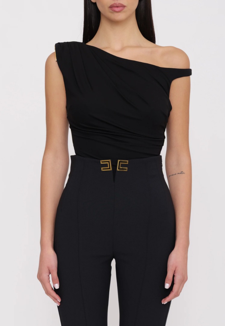 Elisabetta Franchi Body In Jersey Con Spalla Gioiello Nero Bo01361E2 172360