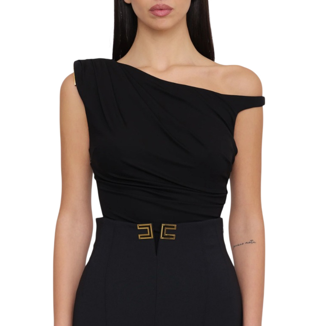 Elisabetta Franchi Body In Jersey Con Spalla Gioiello Nero Bo01361E2 178417