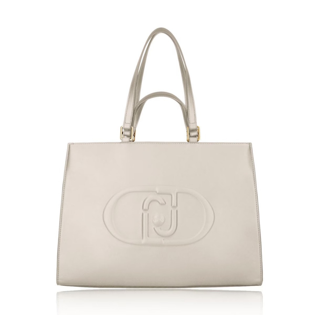 • Doppi manici rigidi • Ampio scomparto interno foderato in beige • Chiusura con moschettone • Pochette interna coordinata • Logo tono su tono sul davanti • Finiture in metallo dorato Dimensioni: 28 x 20 x 16cm