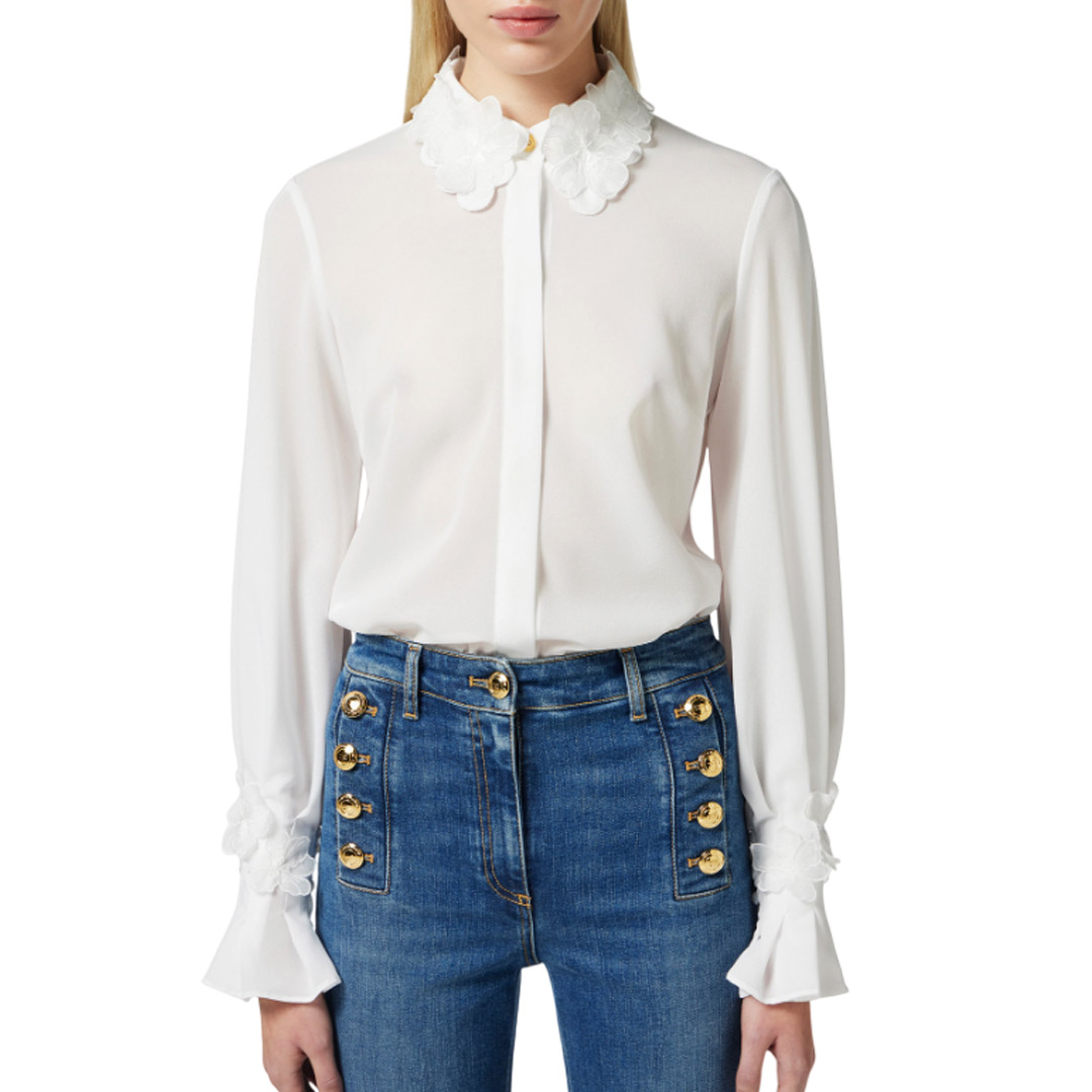 Elisabetta Franchi Camicia Body In Georgette Con Ricamo Su Spalle Burro Cb00946E2 120561