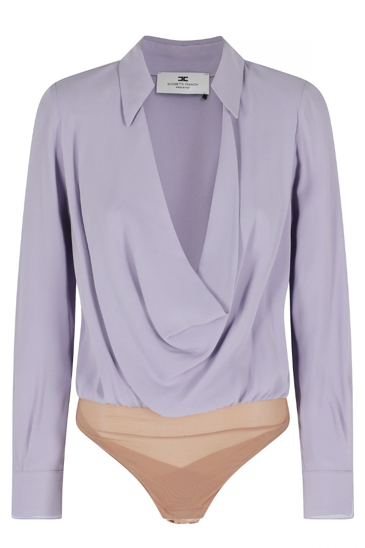 Elisabetta Franchi Camicia Body In Georgette Di Viscosa Lilla Cb00261E2 171482