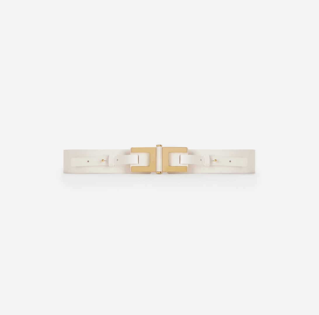 Elisabetta Franchi Cintura In Pelle Con Dettaglio Logo Avorio Ct50S61E2 172222