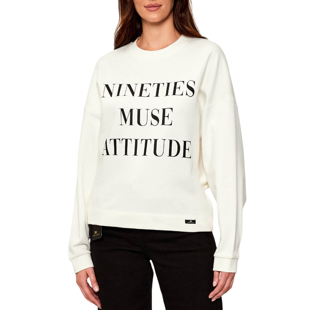 Elisabetta Franchi Felpa In Cotone  Con Stampa Lettering Gesso Md01D56E2 153602