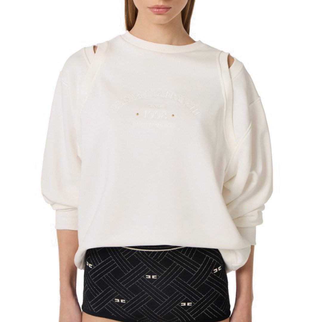 Elisabetta Franchi Felpa In Jersey Con Cut Out Avorio Md01261E2 178105