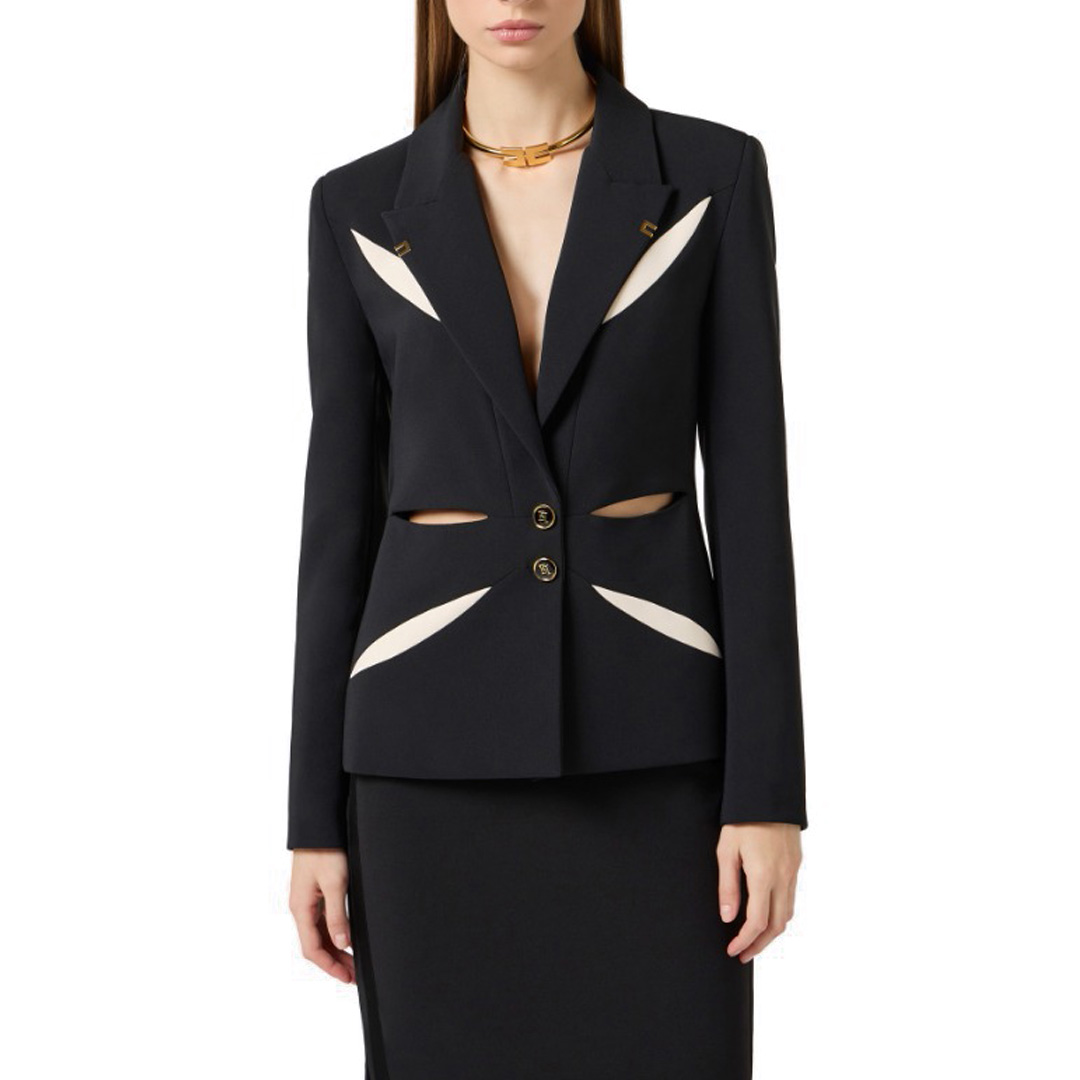 Elisabetta Franchi Giacca In Crepe Leggero Con Cut Out Bicolore Nero Gi19861E2 178322