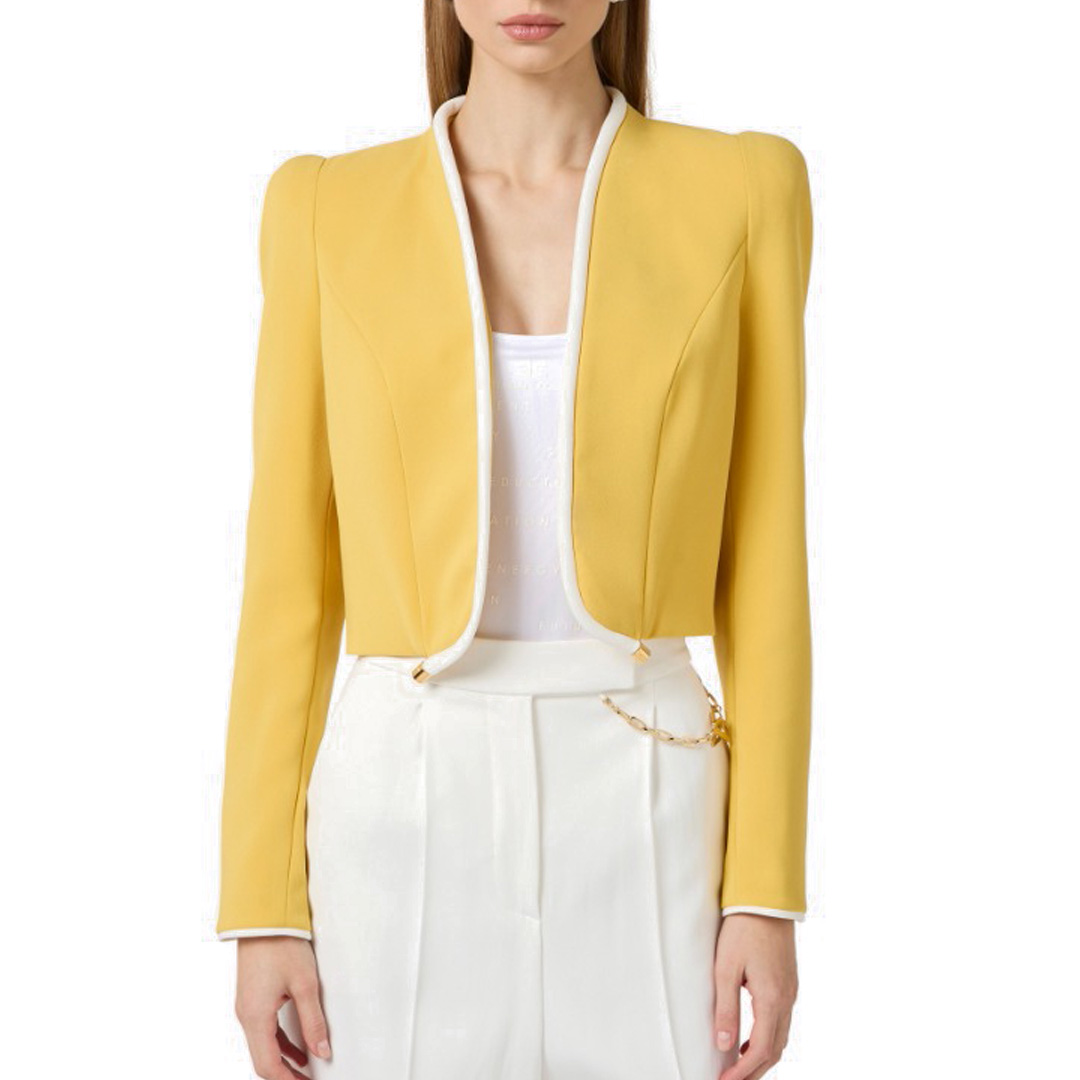 Elisabetta Franchi Giacca In Crepe Leggero Con Piping 3D Giallo Gi21461E2 178243