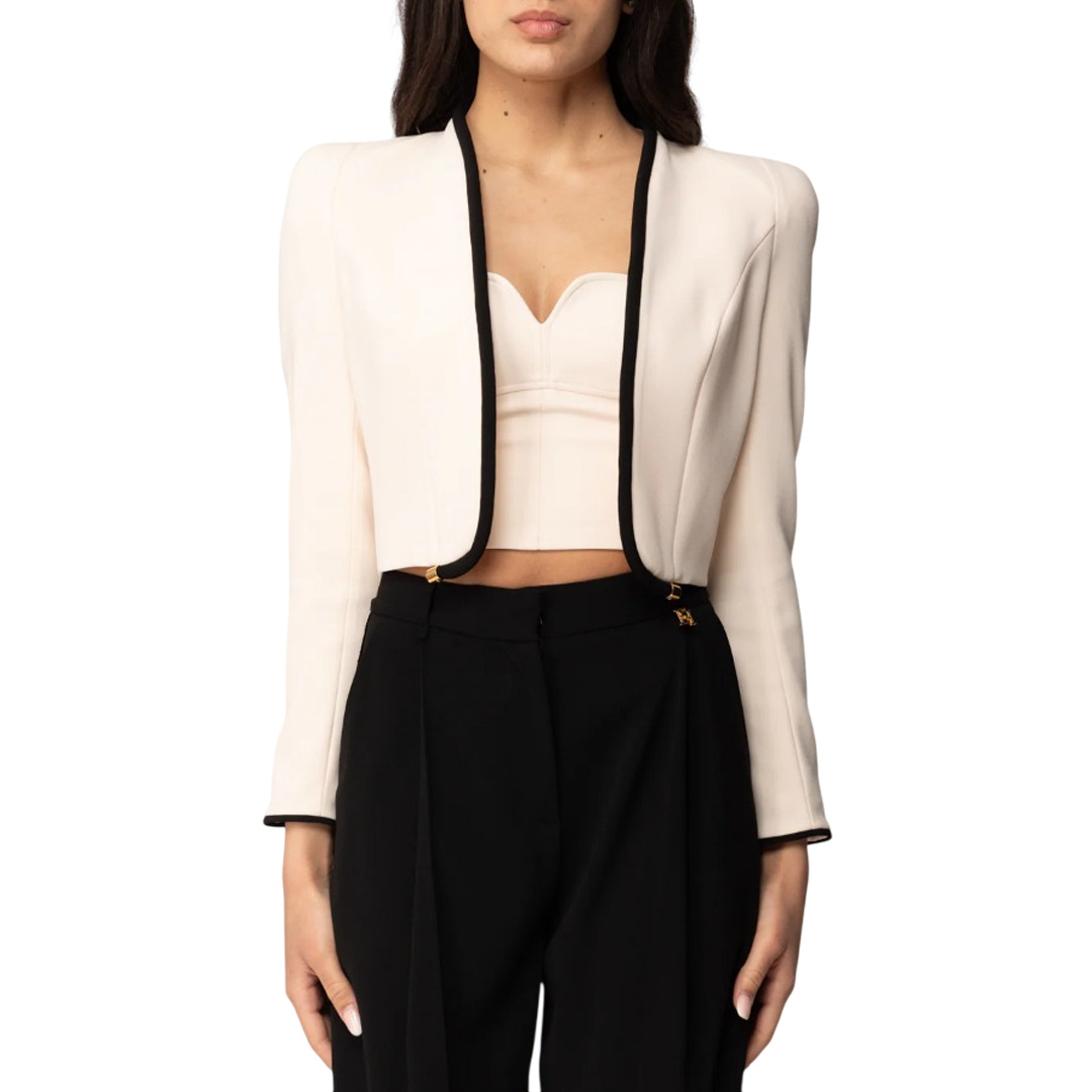 Elisabetta Franchi Giacca In Crepe Leggero Con Piping 3D Burro Gi21461E2 178244