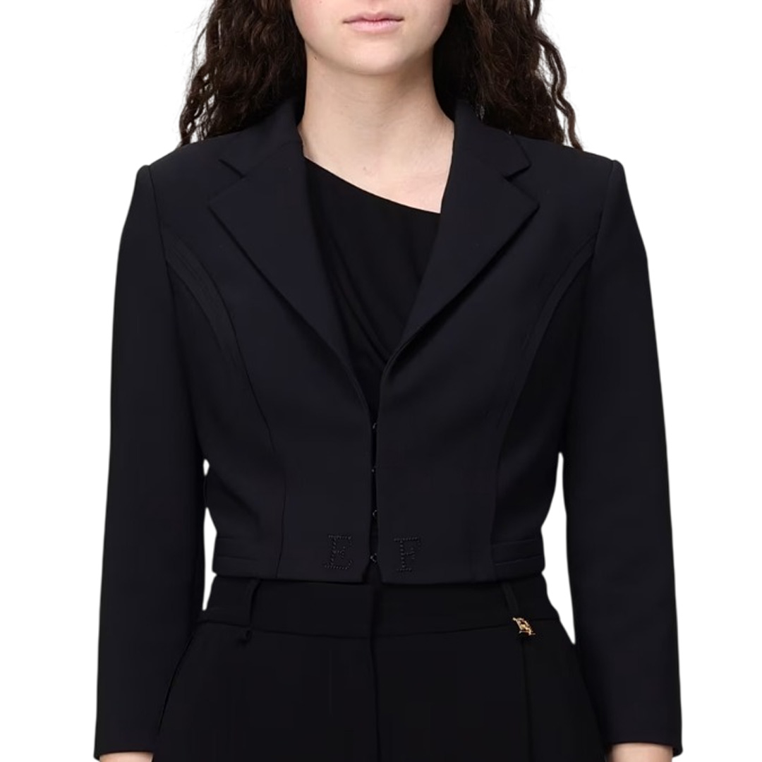 Elisabetta Franchi Giacca In Doppio Crepe Stretch Con Motivi A Taglio Vivo Nero Gi22261E2 178173